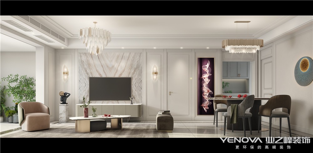 本案为成都业之峰装饰案列,定位美式风格家居就如同美国独立精神一般,讲究的是如何通过生活经历去累积自己对艺术的启发及对品味的喜好,从中摸索出独一无二的美学空间。家居自由随意、简洁怀旧、实用舒适;暗棕、土黄为主的自然色彩;欧洲皇室家具平民化、古典家具简单化;家具宽大、实用舒适;地面拼花与顶面吊顶装饰相呼应,同时采用砂岩,墙布,护墙板装饰使整个空间更具有美感,让家庭成为释放压力和解放心灵的净土。