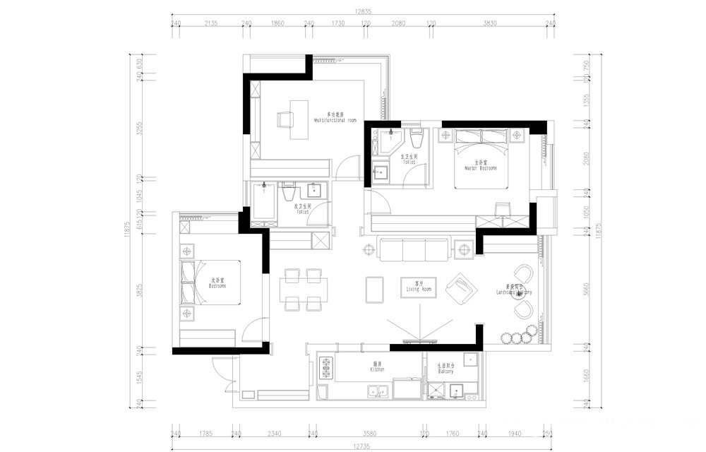小区:桐梓林壹号 面积:120㎡ 户型:三居 风格:美式风格