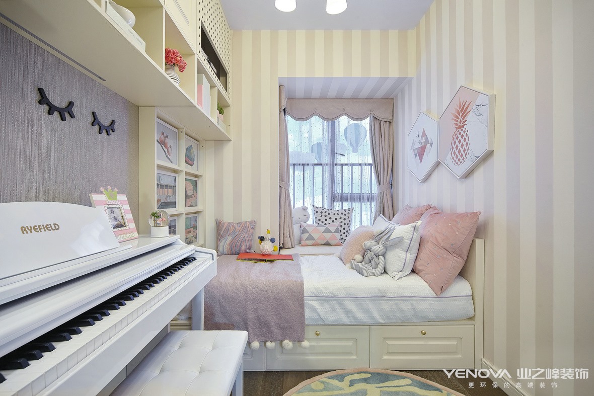 儿童房依然采用储物功能超强的榻榻米作为小朋友的休息区,加上一体式的柜子,整个空间也显得不凌乱。