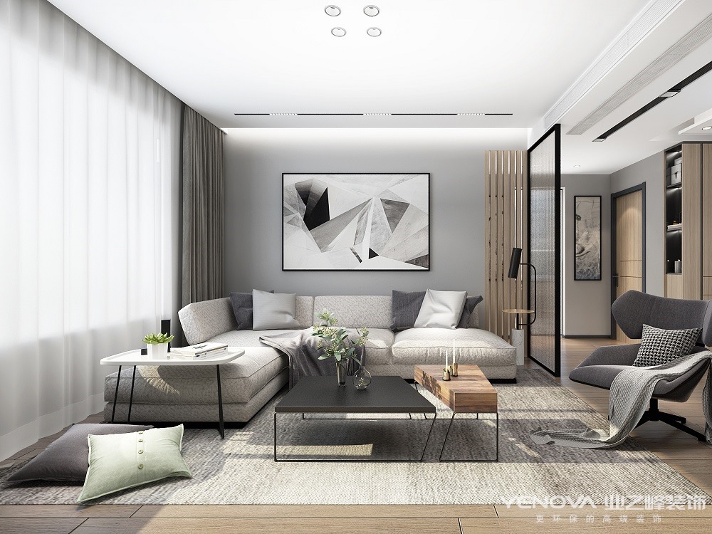 小区:和度华府 面积:117㎡ 户型:三居 风格:现代简约风格