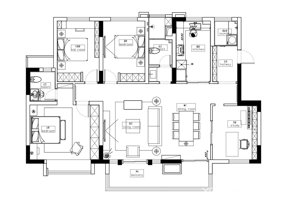 小区:世贸城 面积:150㎡ 户型:四居 风格:现代简约风格