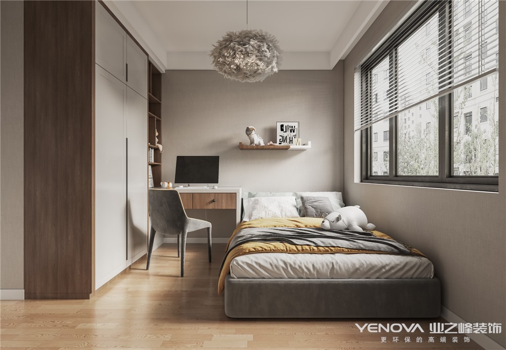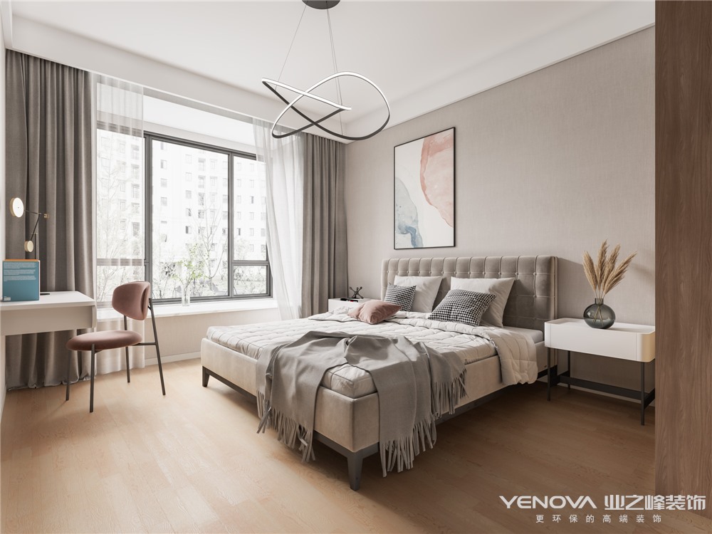 主卧室用墙布,地面用原木色地板,梳妆台和床头柜用白色相呼应。与客厅色调统一。次卧室,做嵌入式衣柜,空间格局与色调一直,,儿童房,衣柜橱柜梳妆台一体定制,柜体板侧面用原木色,柜门门板用白色加隐形拉手。整个空间突出强调所有家居设计陈列都以最简单的方式呈现,并取消很多复杂的东西。从而使室内室外宽敞明亮,线条和色彩单一而不缺乏趣味。
