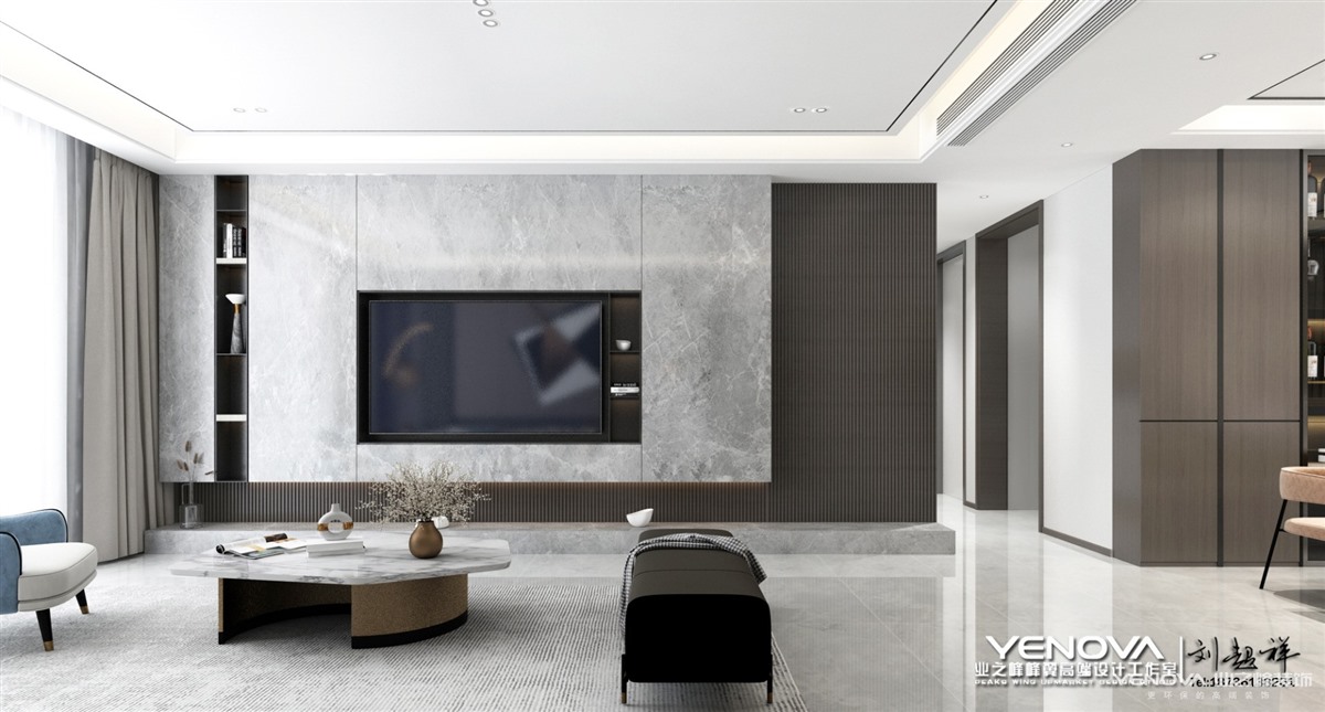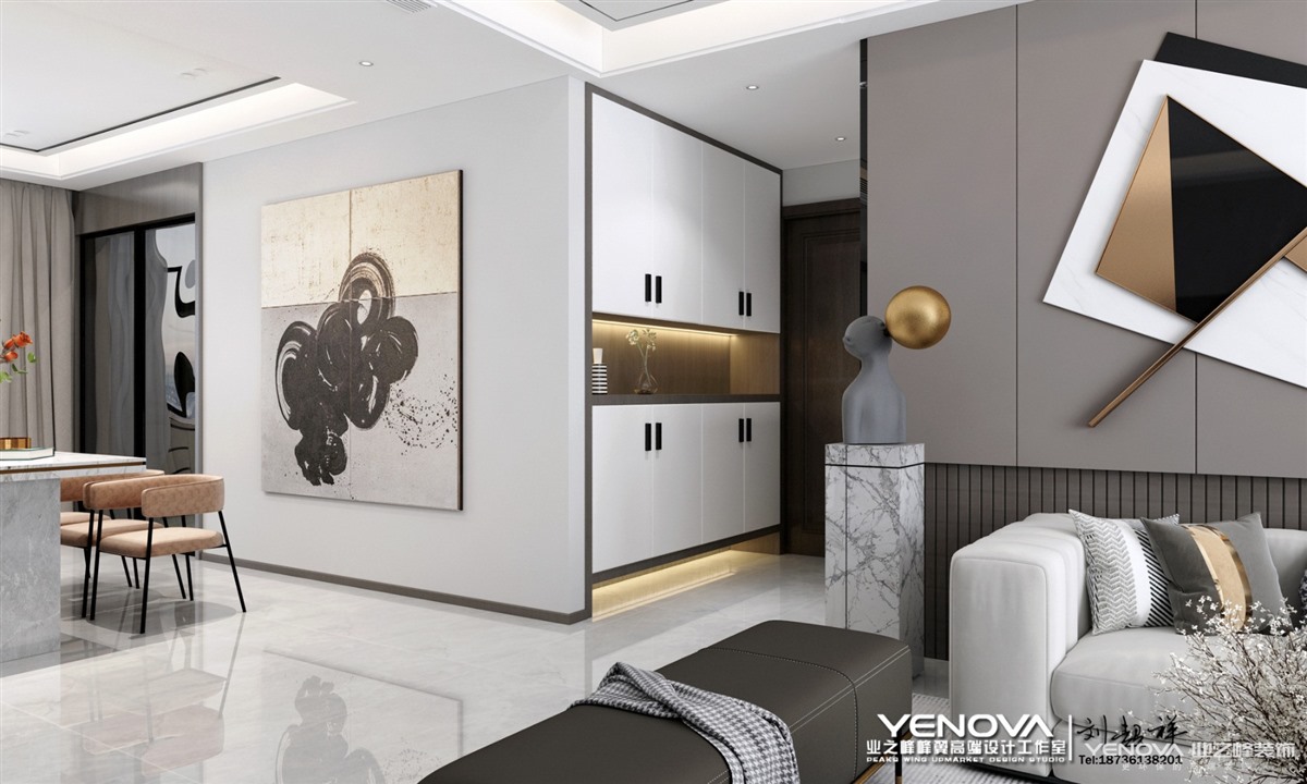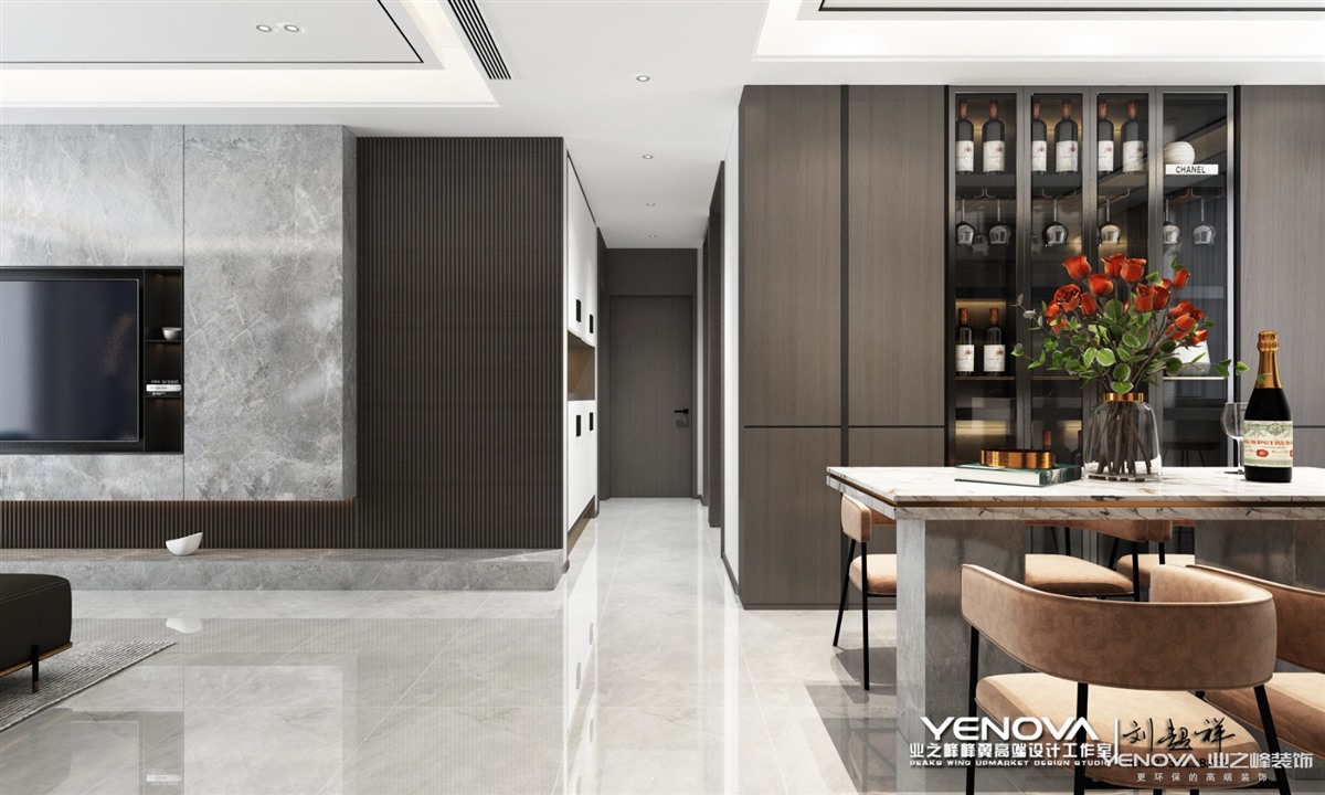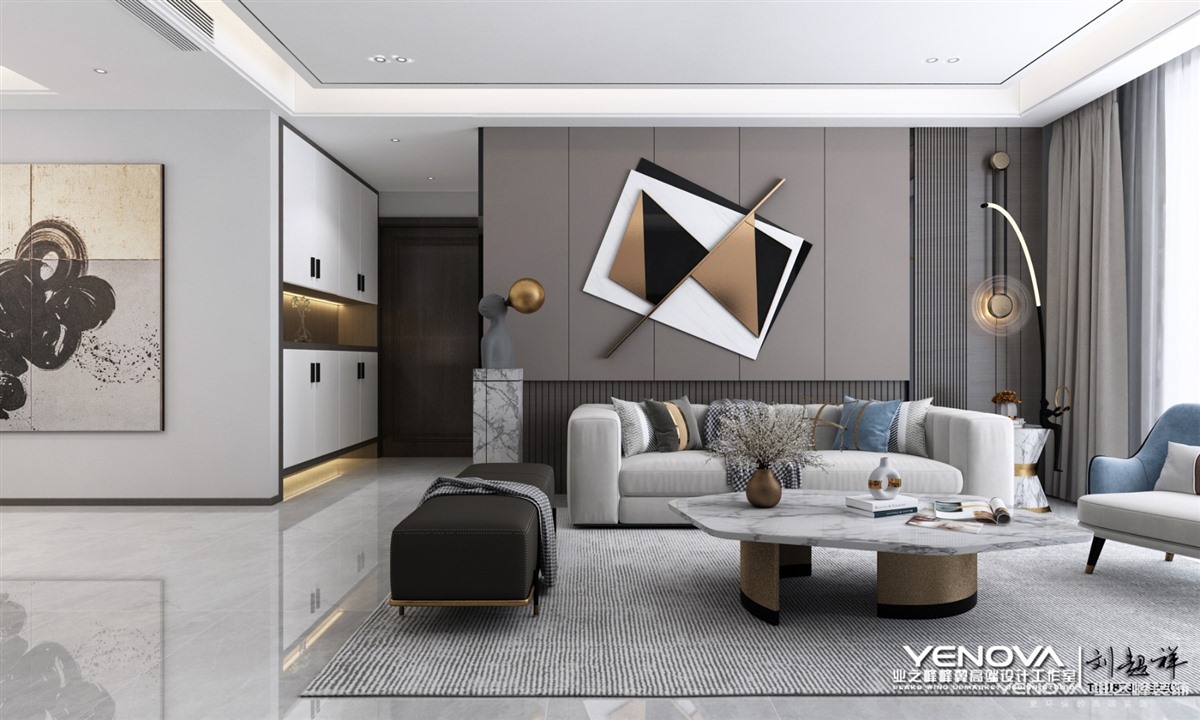 色彩是定位风格的重要因素,想要打造出轻奢的感觉,必然要经过巧妙的色彩搭配,才能显现出丰富的魅力。在色彩选择上,低奢风格一般会选用带有高级感的中性色,诸如黑色、碳灰色、驼色、象牙白或者奶咖,来演绎一种“低调的奢华”,令空间质感更为饱满。驼色、象牙白都是倾向于高雅调性的色彩,它们简约、时髦且富有轻奢气质,运用在家居设计中,可以在呈现温馨大气的格调之余,又牵引出浓浓的时尚高雅范儿。黑色、碳灰色等深色调,则需要在反光材质上,如玻璃、丝绒、镜面等元素中,将华丽的格调最大化彰显。低调奢华风格注重硬装修手法的简洁,但也并不像一般的简约风格那样随意。在“低调奢华风格”的空间里,看似简洁朴素的外表之下却常常折射出一种隐藏着的贵族气质,这种气质大多数通过家具,壁纸,纺织品,皮毛等软装元素而来。硬装修的简洁更有利于衬托出具有品质的家具和软装产品。奢华设计的目的是生活享受,这种享受除了满目所及的奢华视觉之外,满足于身心感受的奢华感也是至关重要的。有人做了一个比喻,在寒冷的冬天里,一张顶级的舒适羊绒被能给你极其温柔的呵护。这也正是“奢华风格”欲达到的境界,希望在没有任何束缚和压力的环境中,打造一片能让身体完全放松又感到无比舒适的温馨环境。轻奢风格注重设计手法上的简洁、大气,但并非忽视品质和设计感,而是通过材质上的奢华,不着痕迹地透露出对于精致、考究生活的追求。