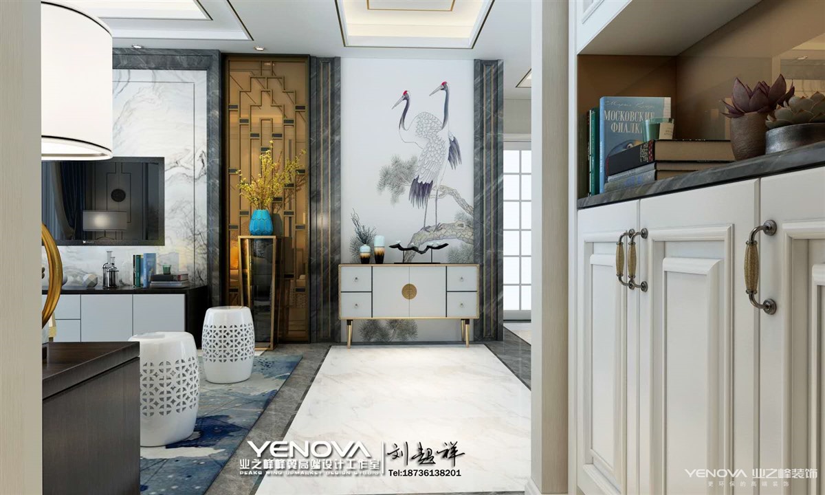 新中式玄关过道走廊装修设计,更注重表达传统文化。新中式装修里,玄关也是屋主人文化气质的“脸面”,因此玄关的装修设计都要凸显的含蓄内敛。除了必要的玄关柜外,绿植也是新中式风格不可或缺的元素,像绿萝、树雕等都是不错的选择。这张新中式风格玄关效果图里,放置了一个金色打底,雕刻花鸟图案的玄关柜,上面还摆放了插花装饰品,从进门那一刻,就能感受到浓厚的古韵风味。同时玄关右手边是一个现代化的鞋柜,提供了充足的收纳空间,这样的搭配更能凸显出整个房屋的新中式风格特色。新中式风格不仅仅是一个质朴的中式设计方案而已,是一份情怀;是沉稳、宁静、朴实,充满静谧柔和之美,从简单的生活中去体验人生百态,让我们在木质家具和传统工艺之中看到了中式装修设计的婉约和灵动,在似水流年里追求一份淡然和美好。想必大家都知道,客厅也叫起居室,是主人与客人会面的地方,也是房子的门面。客厅的摆设、颜色都能反映主人的性格、特点、眼光、个性等。客厅宜用浅色,让客人有耳目一新的感觉,使来宾消除一天奔波的疲劳。一个装修完美,搭配合理的客厅能够恰到好处地表达出主人的涵养和学识,以及其个人审美观念,所以说客厅的装修设计十分重要。中式风格装修对于客厅的设计既要结合中国传统的修饰元素,又要体现主人本身对于古典风尚的喜好,木质家具和古玩的摆设是典型的装饰,其次就要根据主人个人需求来进行设计装修。新中式卧室,在空间装饰上大多采用简洁、硬朗的直线条。这样的直线条被运用在卧室中,一方面反映了现代人对简单生活的居住追求。另一方面,迎合了中式风格家具追求内敛、质朴的设计风格,使得新中式风格显得更加实用,更具现代感。中式装修卫生间里也需要一些装饰品,可以更好的彰显出舒适简约的中式风格的卫生间,可以在洗手台上摆设几个具有中国特色的花瓶,可以在墙壁上安装古香古色的壁灯都是发挥最美中式卫生间的装饰技巧,如果有喜欢的饰物可以选择中式的风格来装扮卫生间。