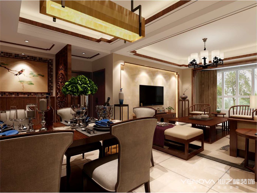 小区:中建南湖壹号 面积:117㎡ 户型:三居 风格:新中式风格