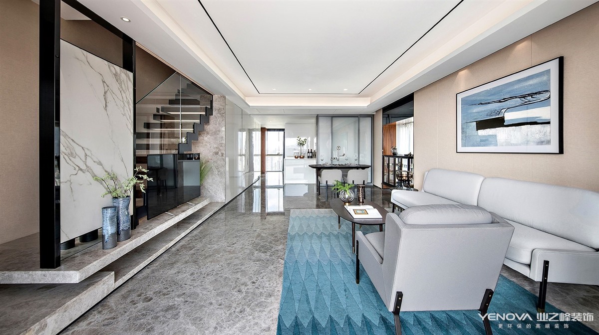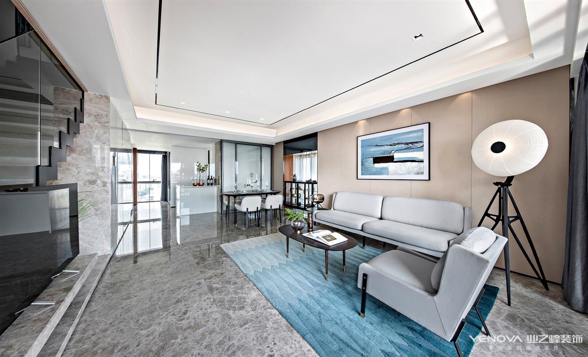 天棚采用无主灯设计,高级前卫的同时加入了轨道灯在里面,家里的光源更加丰富了再配上暖色的视觉光源,整个空间无论是在辅助光源的帮衬下还是独特造型的布局下,都别有一番味道。
