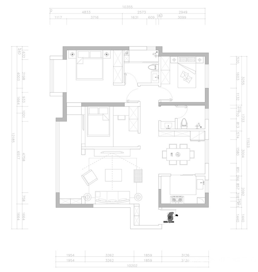 150㎡三居现代简约风格绿地璀璨天城