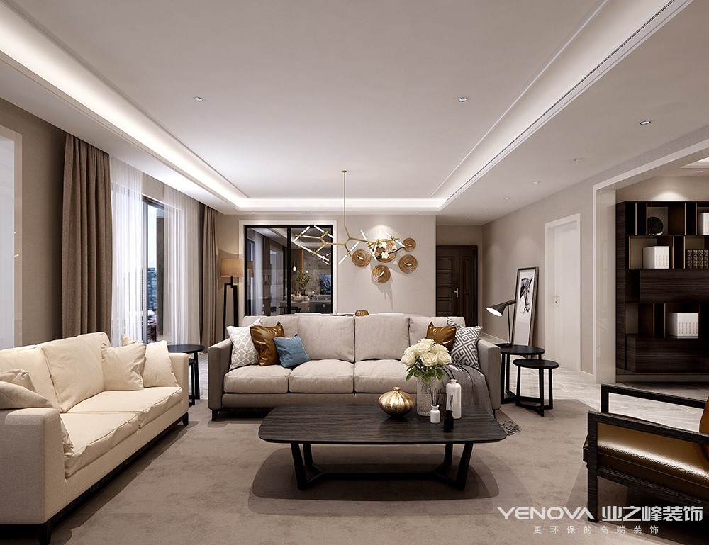 小区:绿地璀璨天城 面积:150㎡ 户型:三居 风格:现代简约风格