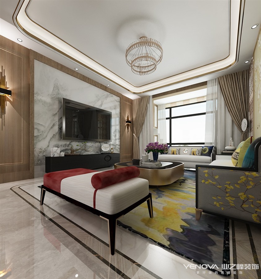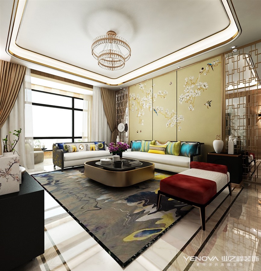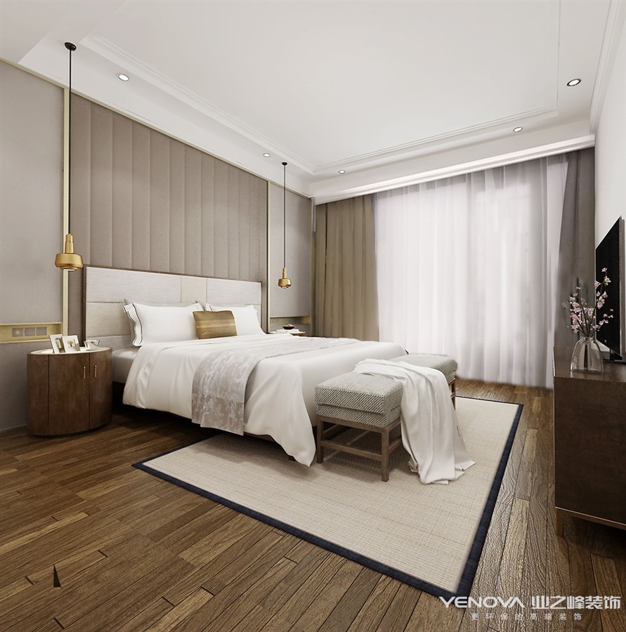 新中式风格从名字上看似乎是两种风格的融合,既有中式风格的古典高雅又含有现代风格的时尚元素。空间装饰多采用简洁硬朗的线条。线装饰在空间中的使用,不仅反映出现代人追求简单生活的居住要求,更迎合了中式家具追求内敛、质朴的设计风格,使"新中式"更加实用、更富现代感。