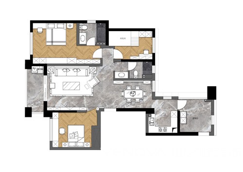 首先,顾客要求保留三间卧室,即主卧、儿童房及次卧。在现场量房中我们发现,顾客的新房是欧式风格的精装房,象牙白的欧式线条搭配灰色花纹墙布,地面是米黄色大理石砖,整体看来苍白单调毫无美感户。我们设计师的建议是全部拆除,方便后期的搭配更统一。经过2个小时的细致量房,以及我们设计师设计好方案后和客户的多次沟通,顾客最终选定好了设计方案。