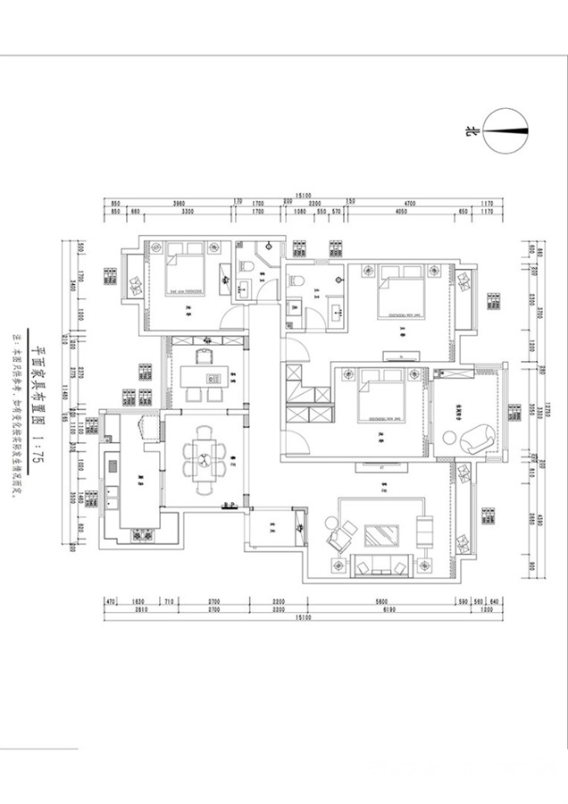 小区:中海东郡 面积:160㎡ 户型:四居 风格:新中式风格
