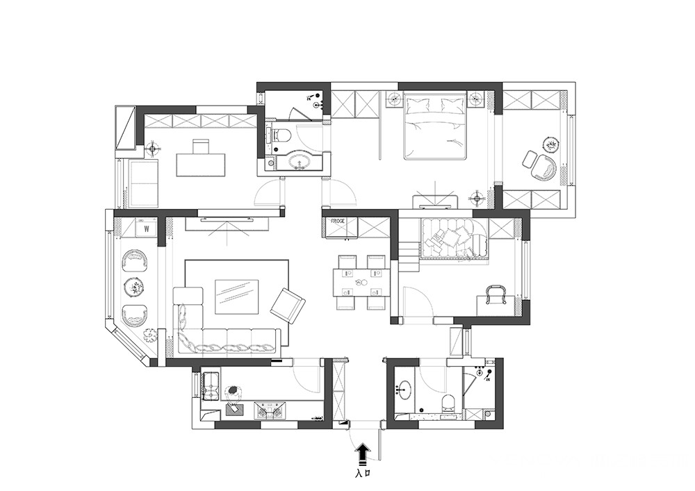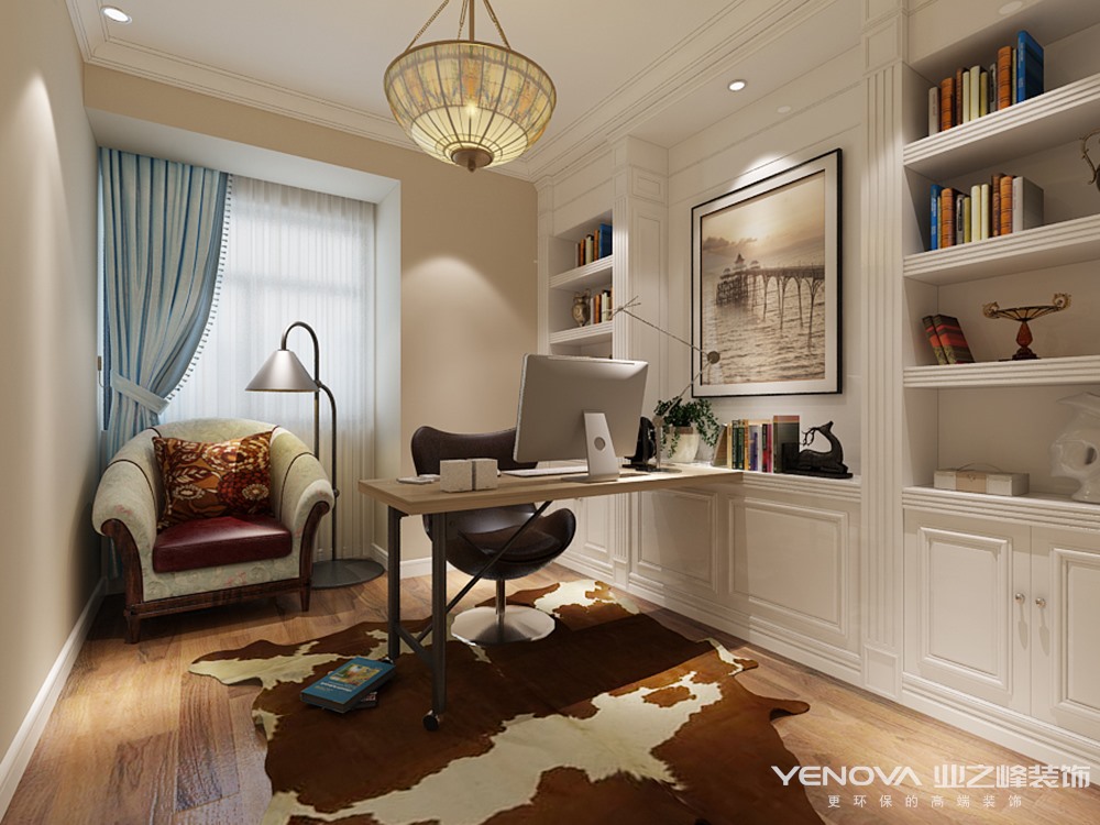客户是一个中年女性,买这个房子是为了孩子上学而且本身也是从事教育工作,需要有办公学习的需求,在改造的是候把朝南的房间作为卧室,朝北的房间作为书房和生活区。业主喜欢美式的家具,但是整个房屋的中心客厅只有朝北的窗户为主要采光,所以在空间色彩的选择上主要用米黄色与白色,使整个房屋看起来淡雅、温馨,造型元素尽量干净、简洁,从而让空间既有层次又使房间看起来不繁琐。