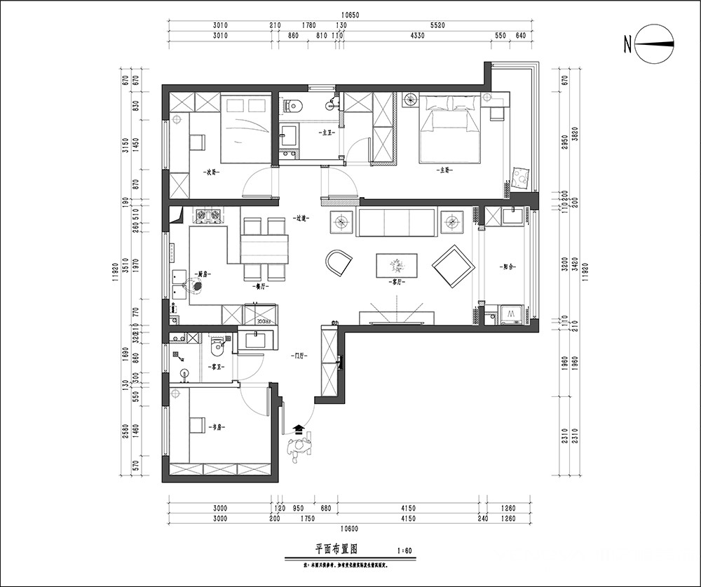 小区:华远海蓝城 面积:115㎡ 户型:三居 风格:现代简约风格