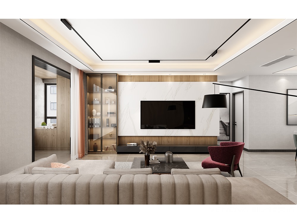 本案装修设计以高品质、简单化为理念,设计出设计极简化且有温馨舒适的感觉,主要是通过材质上的奢华来透露出对于精致、考究生活的追求,且不着痕迹。室内氛围清爽舒心,通过一些精致软装元素来体现,凝结着设计师的独具匠心,既美观又实用。