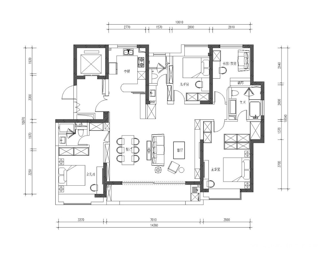 小区:中海城 面积:172㎡ 户型:四居 风格:现代简约风格