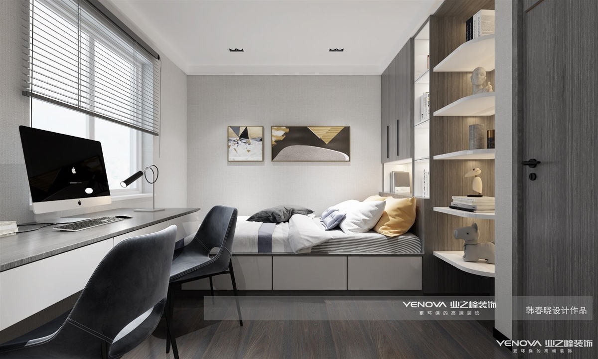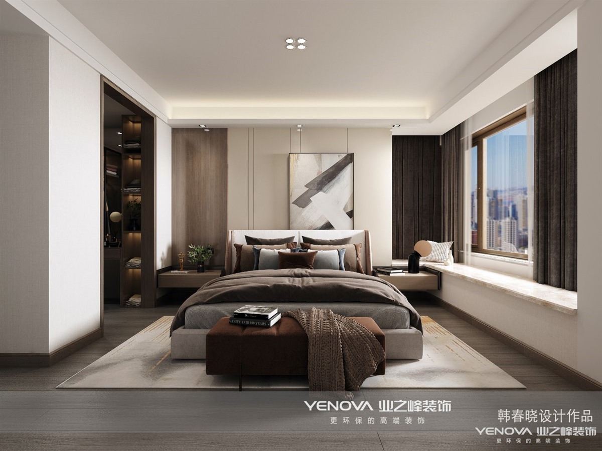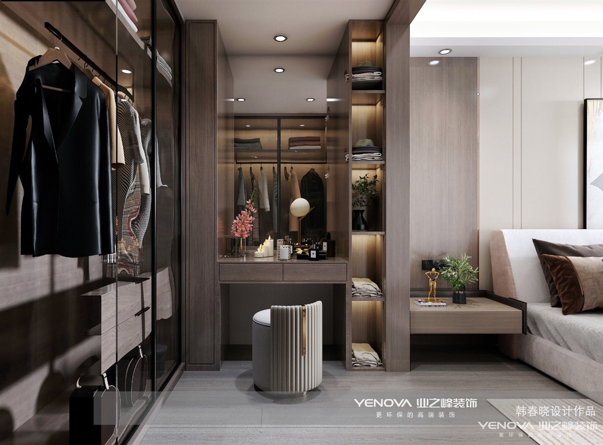 现代设计追求的是空间的实用性和灵活性。居室空间是根据相互间的功能关系组合而成的,而且功能空间相互渗透,空间的利用率达到最高。该案例中把主卧中的卫生间改成了衣帽间,增加储藏功能,厨房改成开放式厨房,使整个空间开阔明亮。家具上强调功能性设计,线条简约流畅,色彩对比强烈,这是现代风格家具的特点。由于线条简单、装饰元素少,现代风格家具需要完美的软装配合,才能显示出美感。例如沙发需要靠垫、餐桌需要餐桌布、床需要窗帘和床单陪衬,软装到位是现代风格的关键。