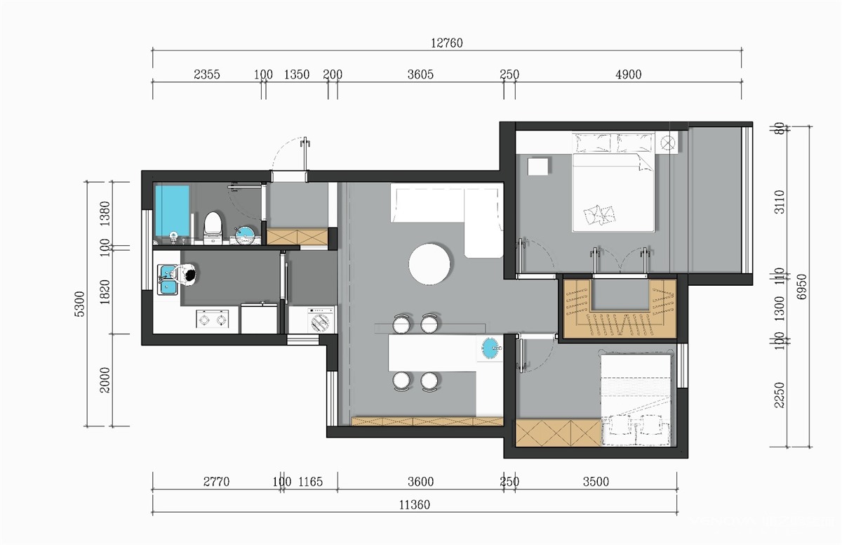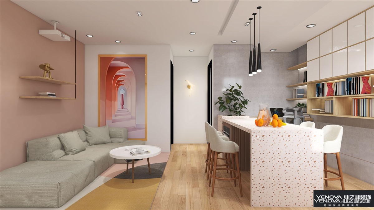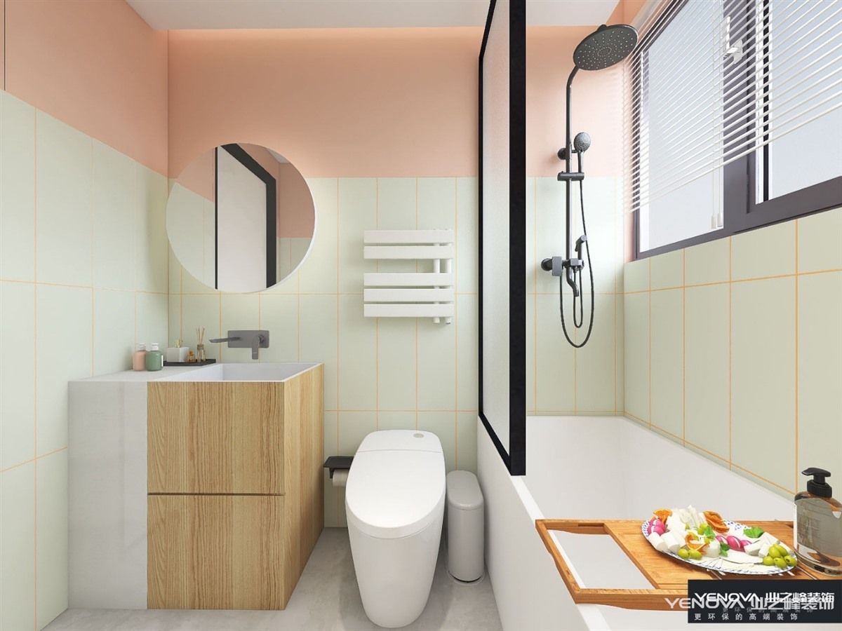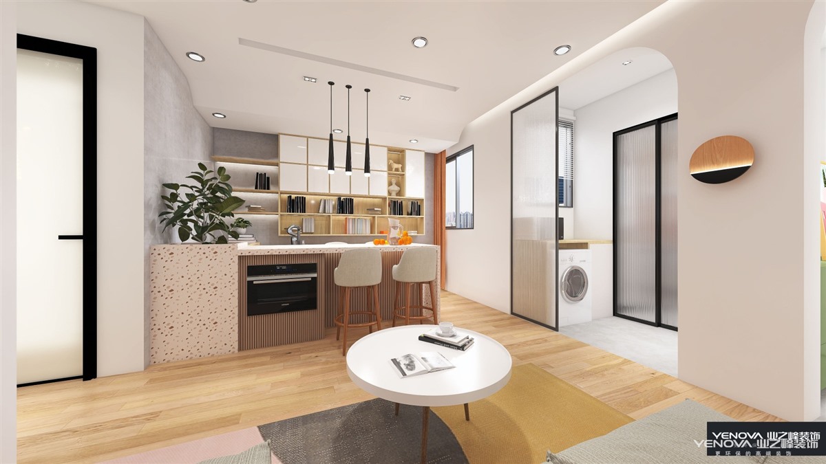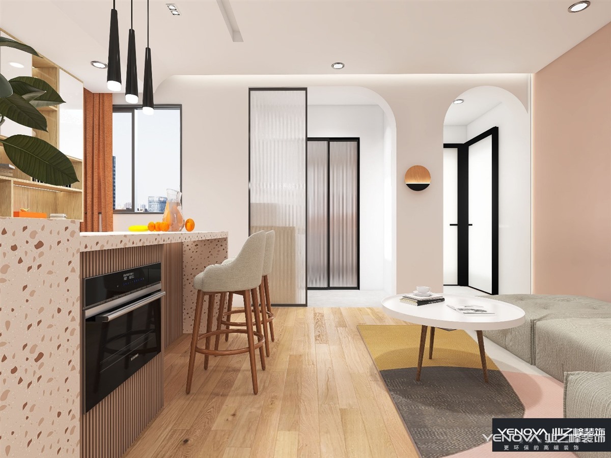 在设计色彩上,主要莫兰迪橙为主,灰色为辅,绿色为点缀,让空间更加温馨,让小小的家充满活力和趣味