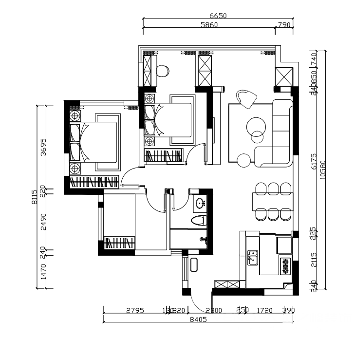 小区:凯德世纪名邸 面积:80㎡ 户型:二居 风格:现代简约风格