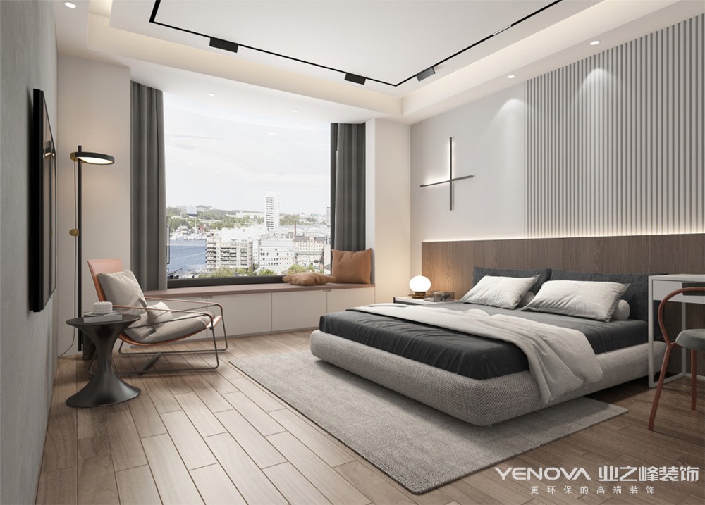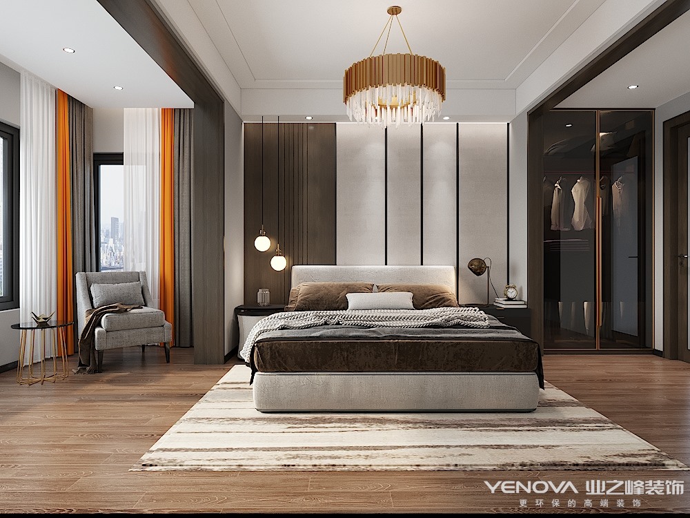 客厅充满极简主义色彩,低调内敛的黑、白、灰相互衬托下,使得整个空间呈现出高质感的魅力,搭配香槟金色和橙色,打破了空间的沉闷气息,形成了极强的视觉冲击力,让整个设计具有脱俗的品位,时尚、沉稳却又十分时尚的空间感,客厅与阳台打通后,变得非常敞亮,整个公共领域变宽敞了,次卧区域加入了书房功能,灰系与木饰贯穿空间,与良好的自然光照相映,平衡着整个空间的调性,同时也平衡着理性的生活方式,一面藕灰白色床头背景墙静谧十足,与空间的灰白色营造出层次感,橙色窗帘则为点睛之笔,将温暖的主题延伸到家中每一处.