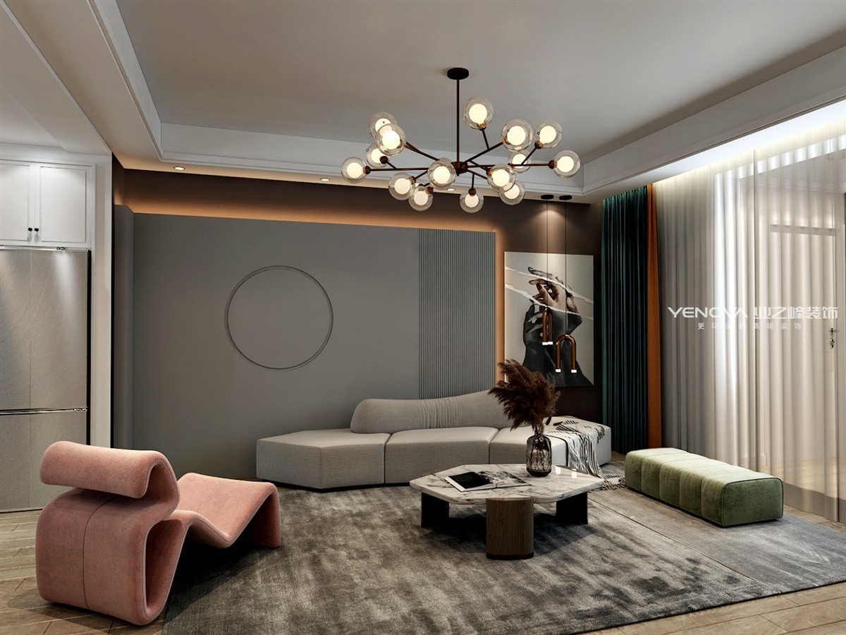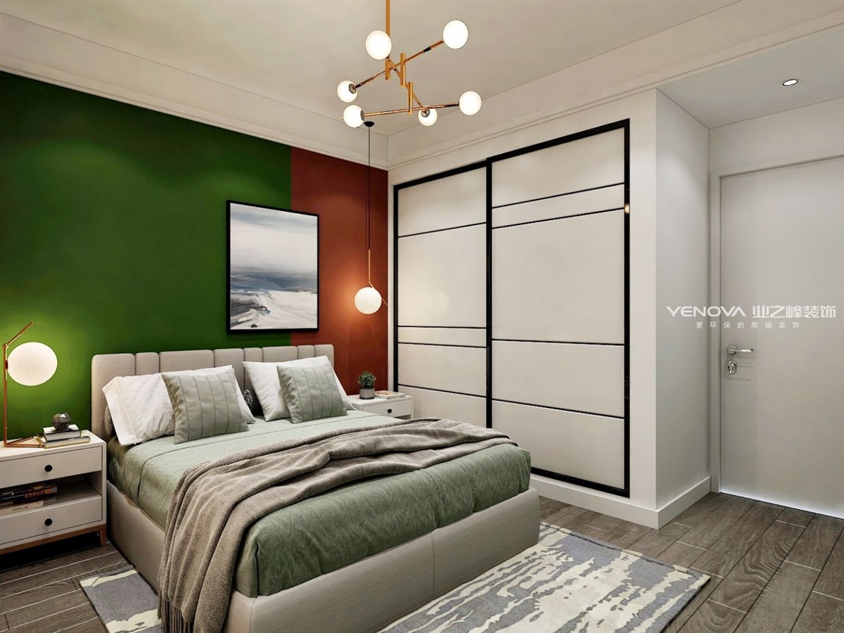 姐妹二人居住 姐姐IT工作者 妹妹电商 爱好唱歌、摄影、旅行等。本案的设计风格为现代。实用性和多元化,简单功能性全面,简约却不简单。删繁就简,去伪存真,以色彩的高度凝练和造型的极度简洁,在满足功能需要的前提下,将空间、人及物进行合理精致的组合,用最洗练的笔触,描绘出最丰富动人的空 间效果。空间简约,色彩就要跳跃出来。客厅背景墙与卧室背景墙,苹果绿、大红、高纯度色彩大量运用,大胆而灵活,不单是对简约风格的遵循,也是个性的展示。室内墙地面及顶棚和家具陈设,乃至灯具器皿等均以简洁的造型、纯洁的质地、精细的工艺为其特征。尽可能不用装饰和取消多余的东西。两个卧室与客厅主色绿色与客厅交相呼应,又同家具的颜色对比强烈,给人一种洋气、与众不同的感觉。