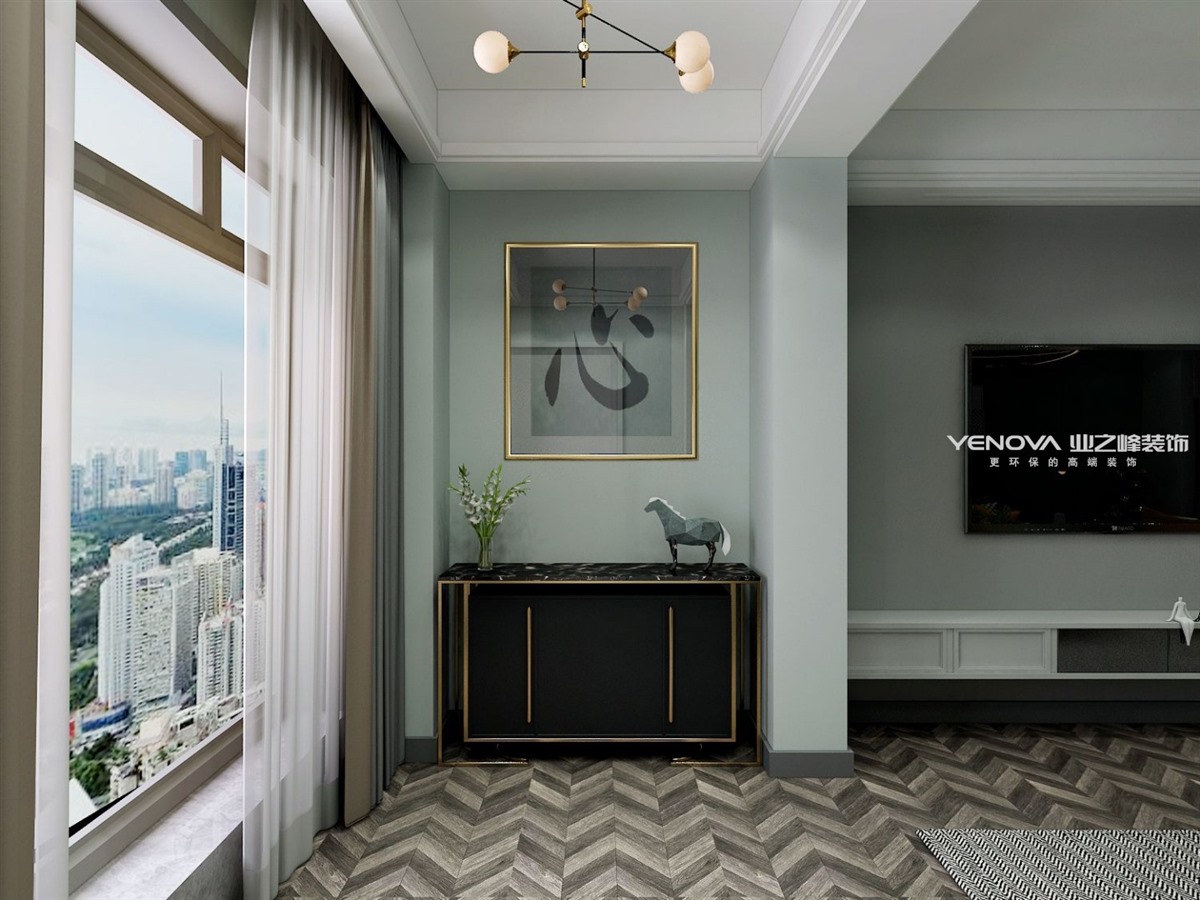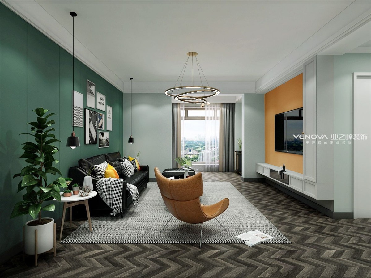 小夫妻 夫妻经营一家小买卖 爱好跑步、阅读等。本案的设计风格为现代。通过强调原色之间的对比协调来追求一种具有普遍意义的永恒的艺术主题。装饰画、织物的选择对于整个色彩效果也起到点明主题的作用。全屋中心色为牛油果绿、橘色。客厅沙发用黑色,地毯灰白使对比不那样强烈。局部点缀些金色,如镀金的壁灯,墙面再加一些蓝色作为辅助,便形成时髦感。阳台放置小吧台,无论喝些下午茶或是办公都能沐浴阳光,温暖、惬意。浴室的淡绿更添生机,看到的瞬间给人感觉春意盎然,充满生机。以简洁和纯净来调节转换精神的空间,这是人们在互补意识支配下,所产生的亟欲摆脱繁琐、复杂、追求简单和自然的心理,所以舒适安逸的家具让人人身在其中时产生的愉悦、安逸使人不愿离开。