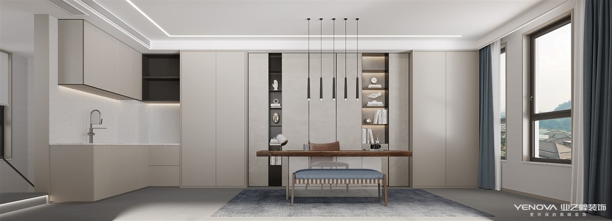 小区位于西安市长安区。本方案在设计上追求功能与形式完美统一,优雅独特,简洁明快的设计风格。针对这一主题,设计上以协调各功能空间的使用要求为目的,布局上力求合理,功能上力求完备,动线计划上争取做到畅通合理,满足功能要求,同时又给人以艺术之美感。创造出空间美,简洁的面与面结合,虚与实的对比,简单的线条。通过高品质的材料与精细的做工来表达一种生活的态度。针对上班族,设计采用简约明朗的线条,将空间进行了合理的分隔。面对扰嚷的都市生活,一处能让心灵沉淀的生活空间,是本房业主心中的一份渴望,也是本设计在该方案中所体现的主要思想。因此,开放式的大厅设计给人以通透之感,避免视觉给人带来的压迫感,可缓解业主工作一天的疲惫。没有夸张,不显浮华,通过过于干干净净的设计手法,将业主的工作空间巧妙地融入到生活空间中。