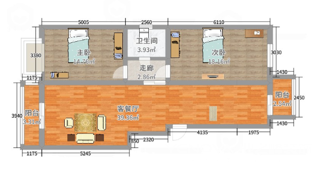 小区:金达园 面积:107㎡ 户型:二居 风格:现代简约风格