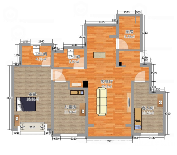小区:仁恒海和院 面积:117㎡ 户型:三居 风格:其他