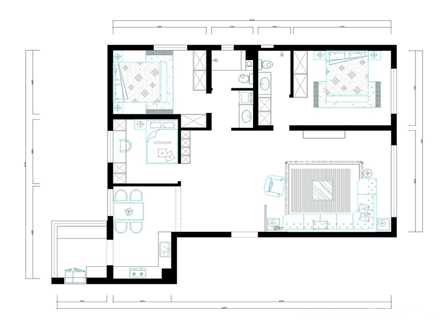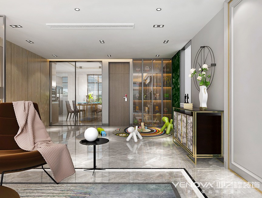 150㎡+现在简约,本方案是围绕现代简约为主题,以港式为格调,那里面透着一股对精致生活的理解和尊重。针对硬装的冷静色彩和简洁线条,我们选取了一些中性偏暖的低频率家具、饰品去协调整个家居格调,使其柔和温馨。这种横向的客餐厅布置,在纵横有致的分布中,将空间感受扩大了近一倍使人在推门即入的玄关处,便能感受到深邃的吸引力。通过色块,灯光,利用点、线、面,穿插的设计手法来打造餐厅氛围,户型图