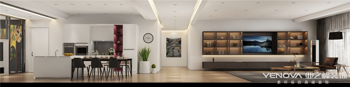 设计说明:本案以纯洁的白色为背景色,原木色作为家庭的主色调,强调自然、归朴的田园居,深咖色的家具为主题色组与地面的原木色形成敏感度的变化,凸显了室内空间的层次感,纯净的空间融入绿色气息,让身处都市的人们有了回归大自然质感,整个空间营造一个低对比度的和谐,满足了业主追求的轻生活。