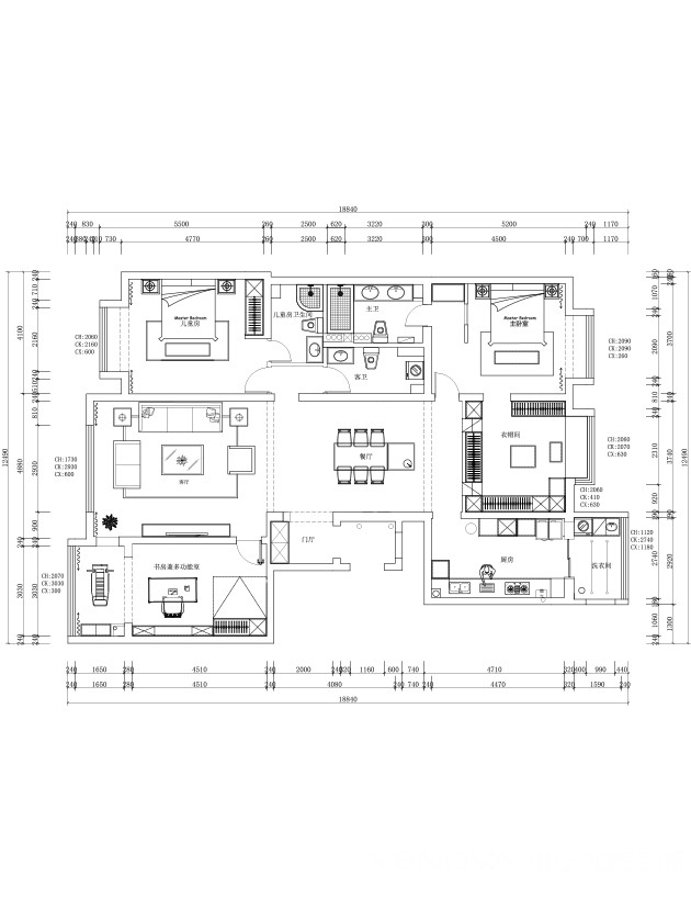 小区:剑桥春雨 面积:205㎡ 户型:四居 风格:现代简约风格