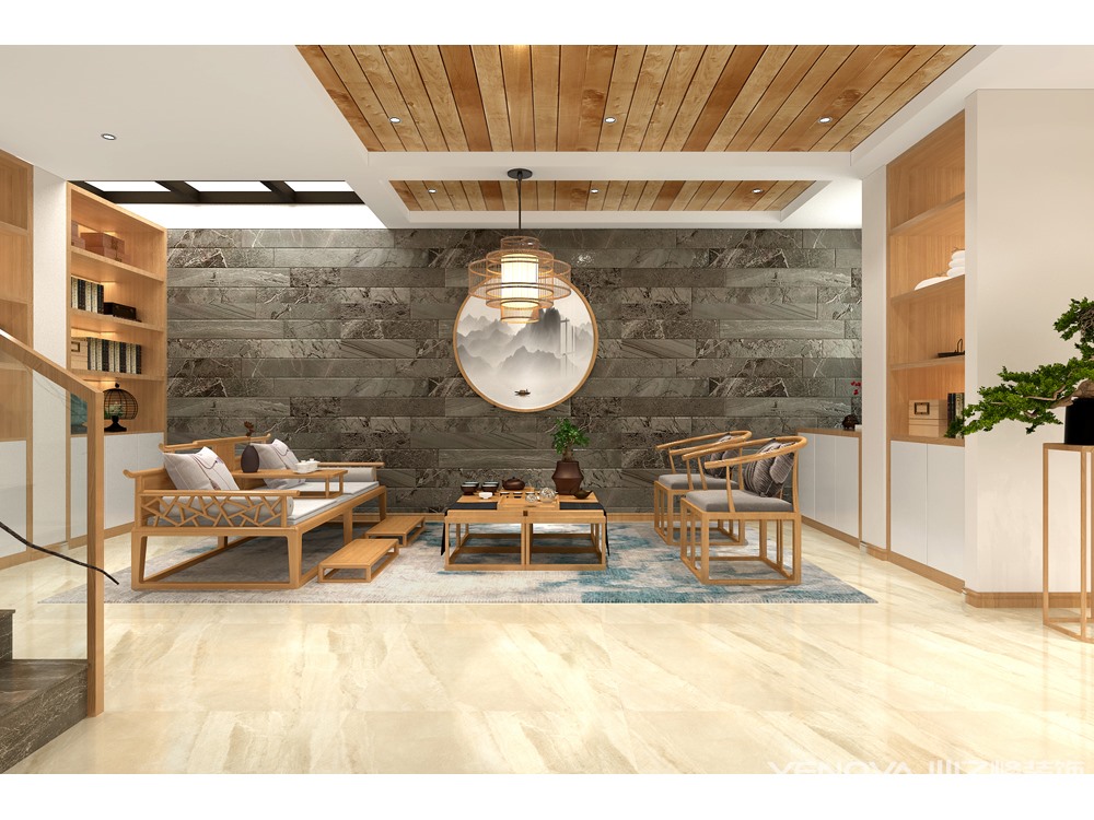 在方案设计中加入了原木色饰面,整体感觉温馨大方,让人心境放松平和。一层为常规的家庭居住方式,负一为私人休闲区域。品茗,交流感情,通过天井射下的一缕阳光感受生活的惬意!