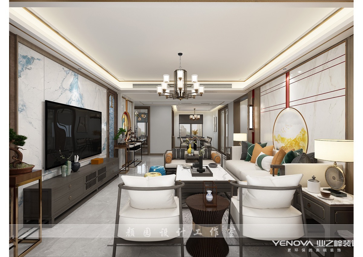 新中式风格设计要点简朴优美,色彩浓重而成熟。中国传统室内陈设包括字画、匾幅、挂屏、盆景、瓷器、古玩、屏风、博古架等,追求一种修身养性的生活境中国传统居室非常讲究空间的层次感。