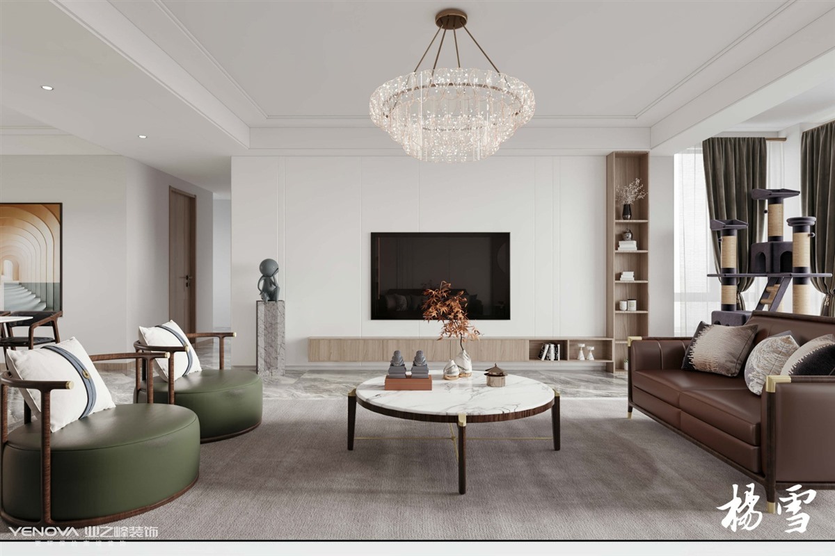 新中式混搭设计,以简描繁,大片的留白让空间的层次充分展现出来,整体印象给人一派清新自然高洁之意,至纯至美,出于自然,而高于自然。