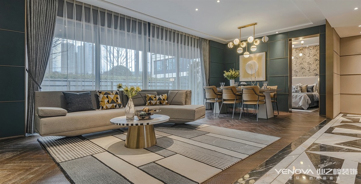 客厅中主色调灵感来自于,春日里的和煦阳光,