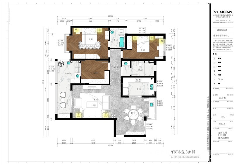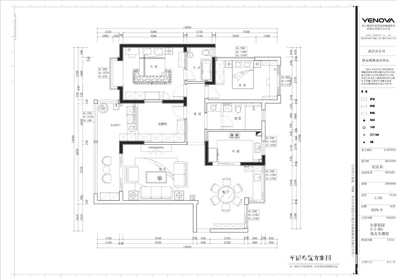 小区:万景国际 面积:137㎡ 户型:三居 风格:美式风格