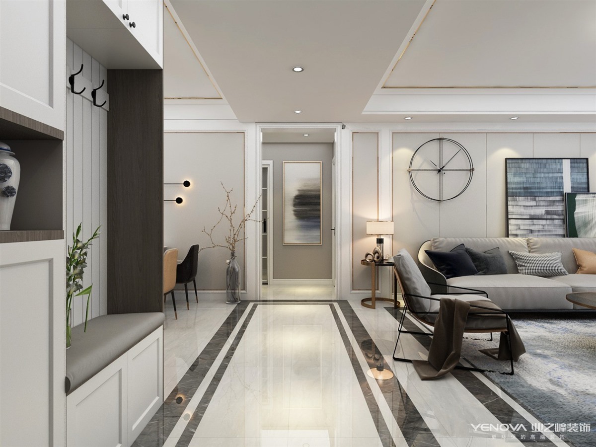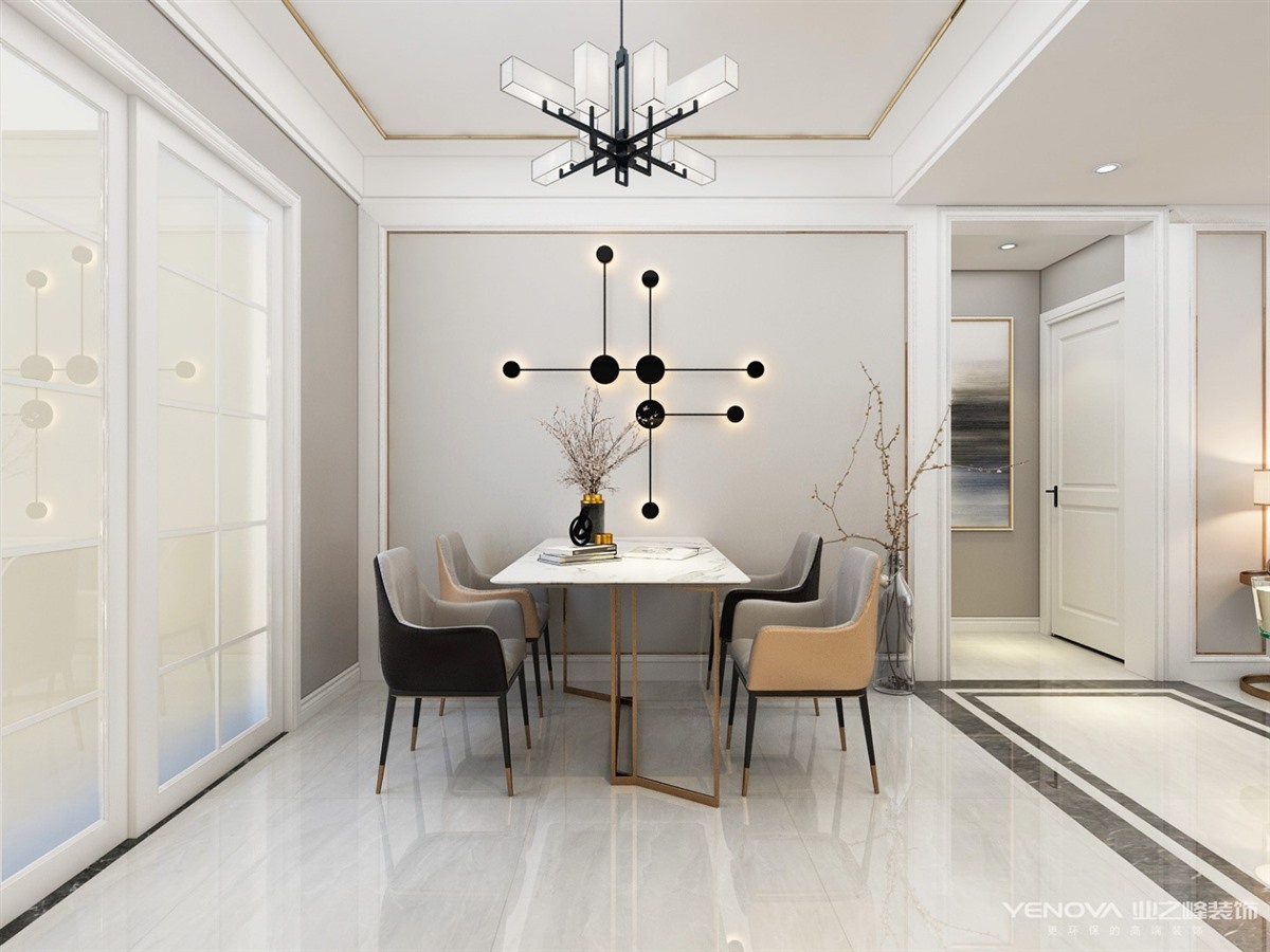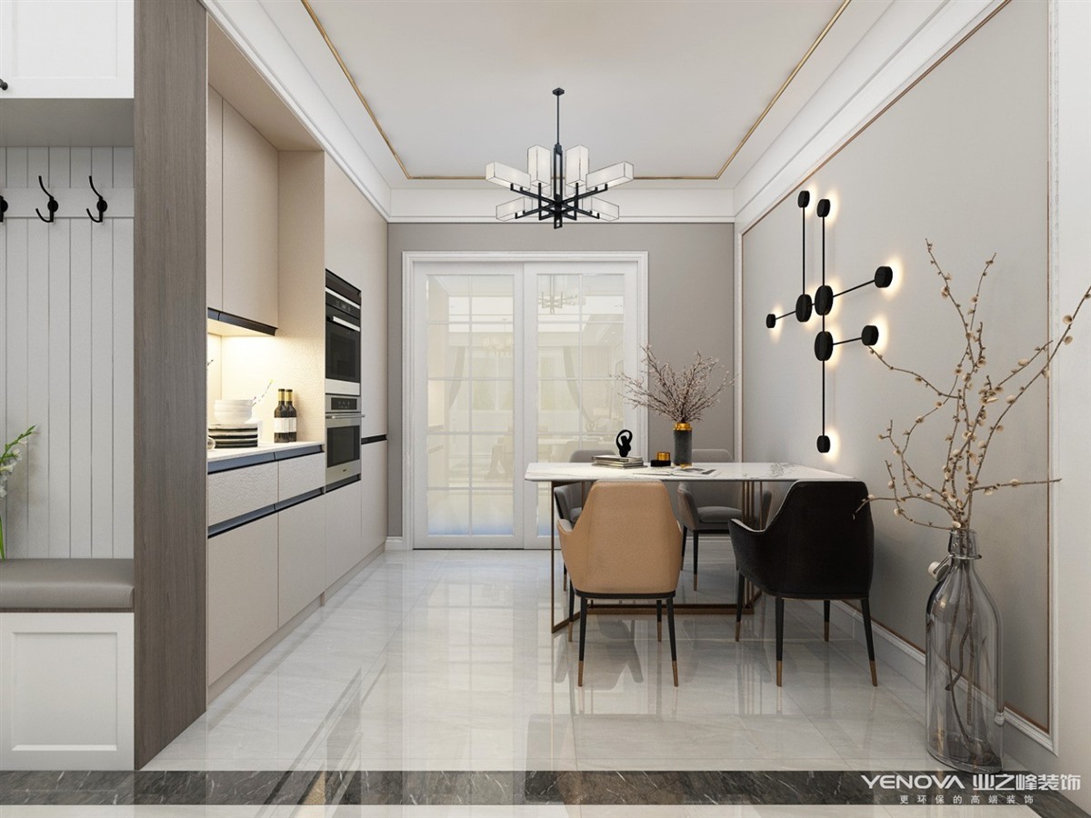 中建长清湖整体采用了暖色系,暖灰色又彰显了大气,电视背景墙采用大理石和木制护墙板,呈现优雅魅力和精致大气的视觉感官,符合人们对现代生活的审美需求,让空间张扬不浮夸、经典且时尚,成为永恒不变的奢侈品味。
