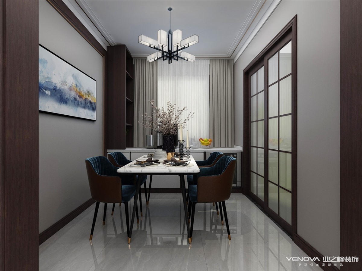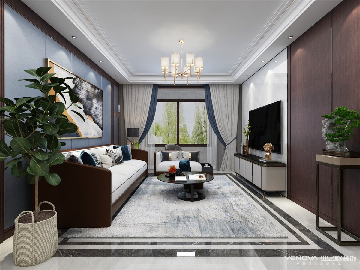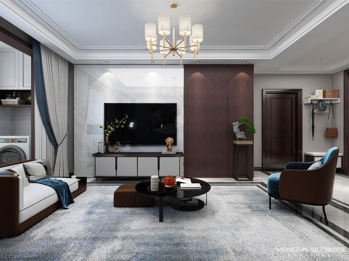 万卷府冷暖色系但是暖色多一些,红木色增添了整个空间的沉稳,电视背景墙采用了大理石和隐形门的设计整体都彰显了大气沉稳,空间品质体现于对细节的处理,动静有序,现代而不失沉稳,设计师用心地在其中找到平衡。