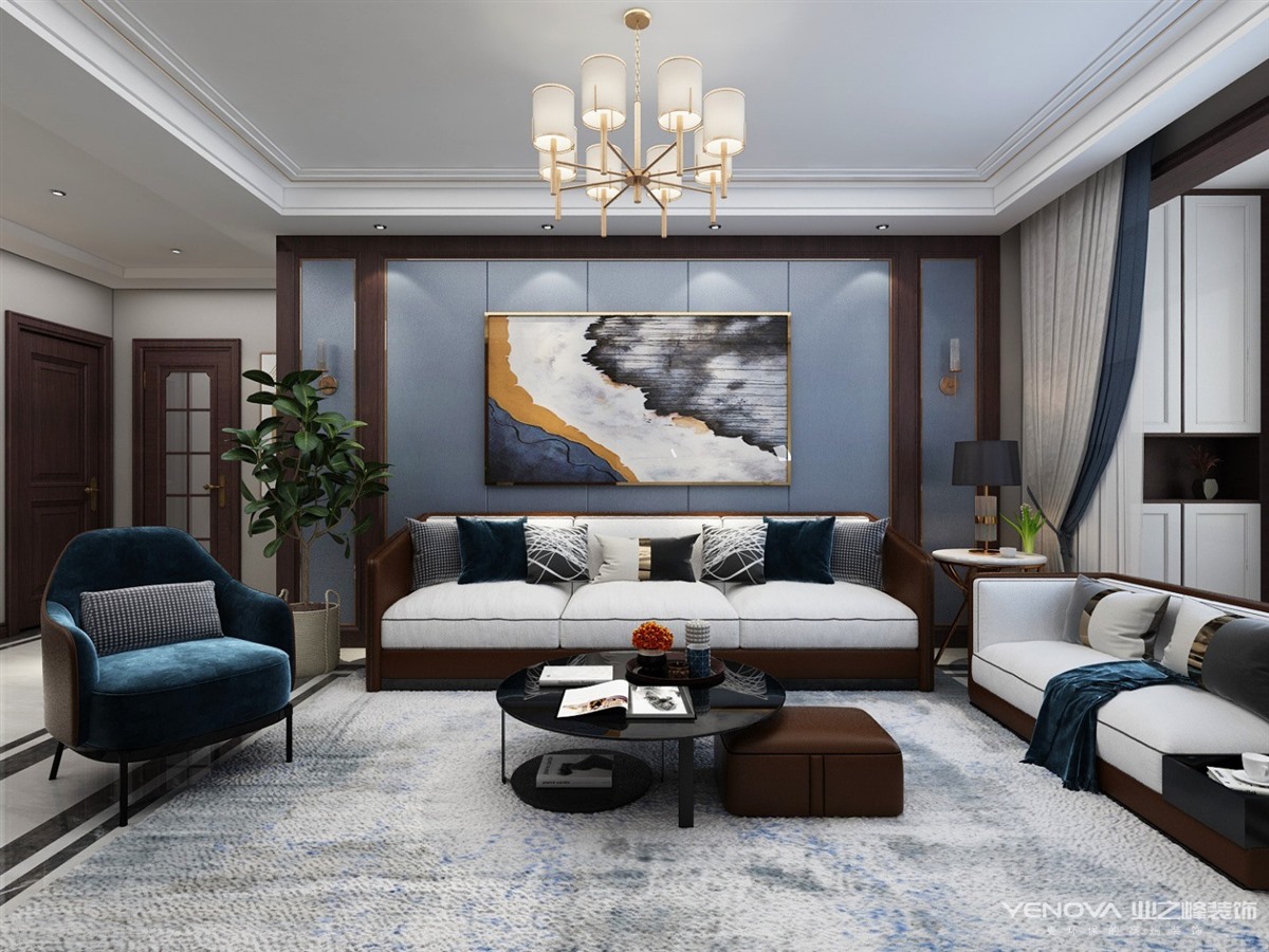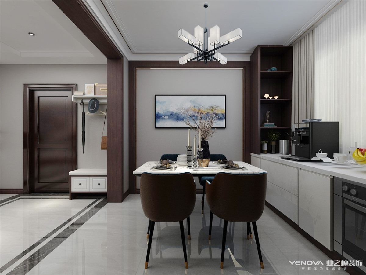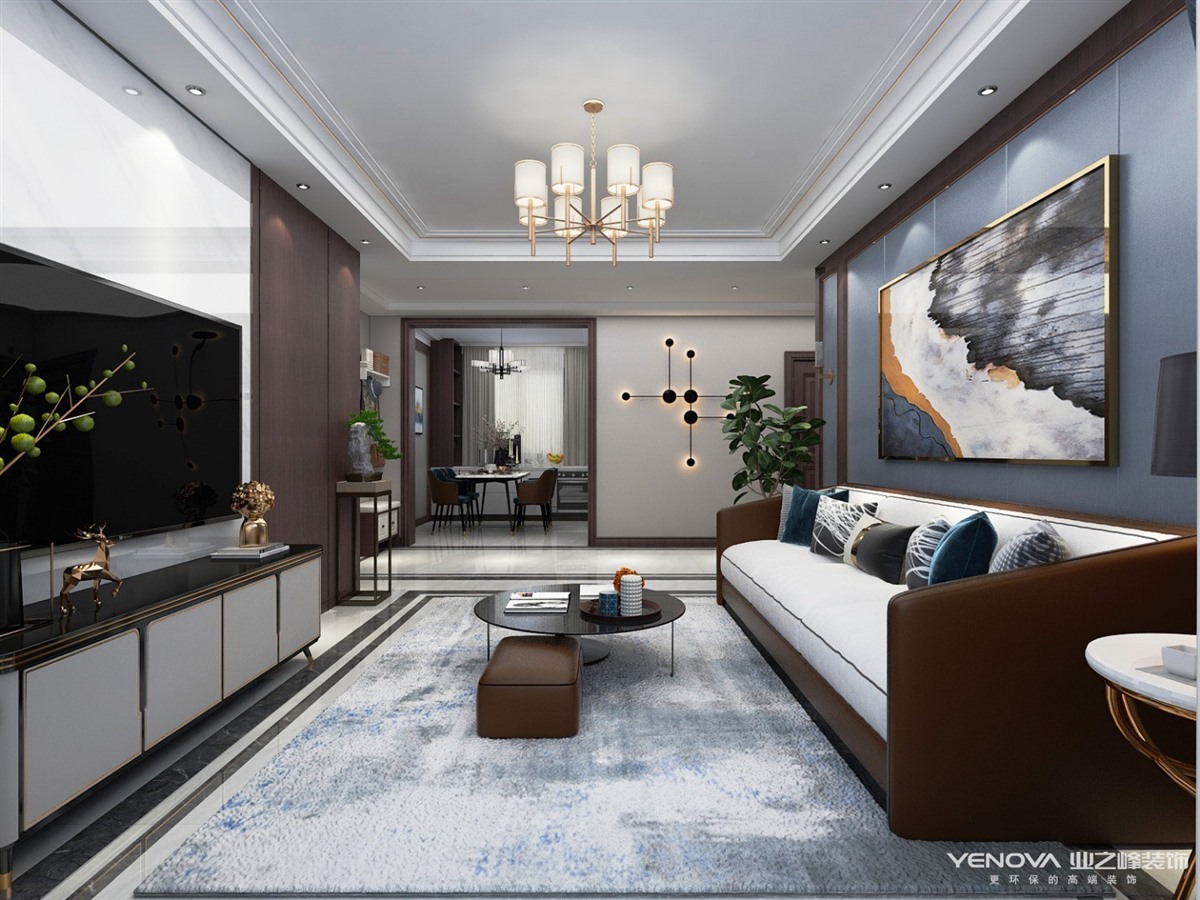 万卷府冷暖色系但是暖色多一些,红木色增添了整个空间的沉稳,电视背景墙采用了大理石和隐形门的设计整体都彰显了大气沉稳,空间品质体现于对细节的处理,动静有序,现代而不失沉稳,设计师用心地在其中找到平衡。