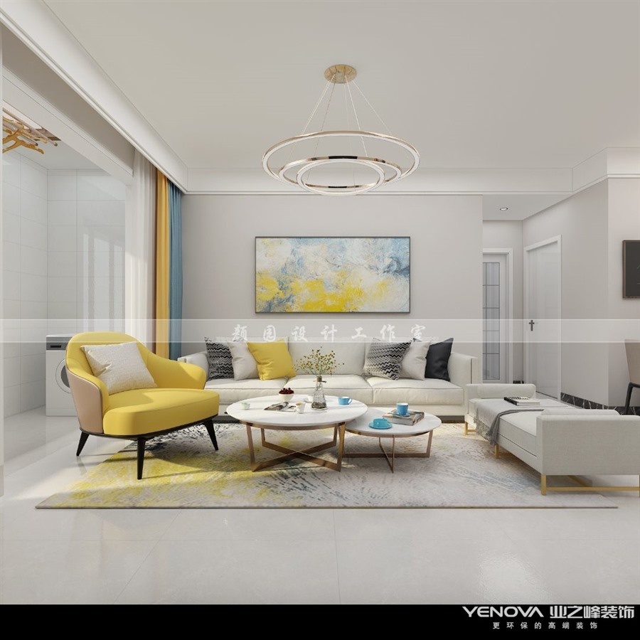 小区:山水泉城 面积:107㎡ 户型:三居 风格:现代简约风格