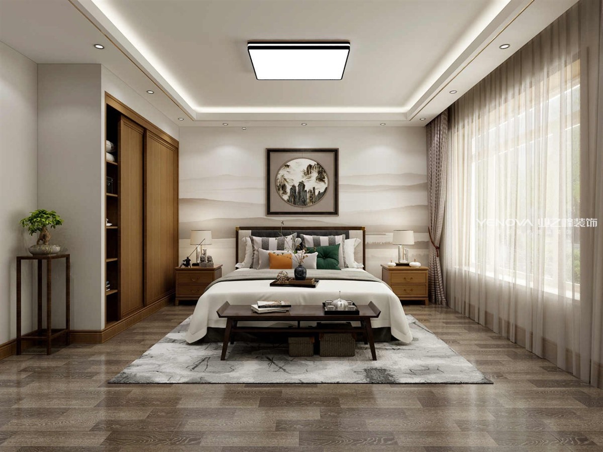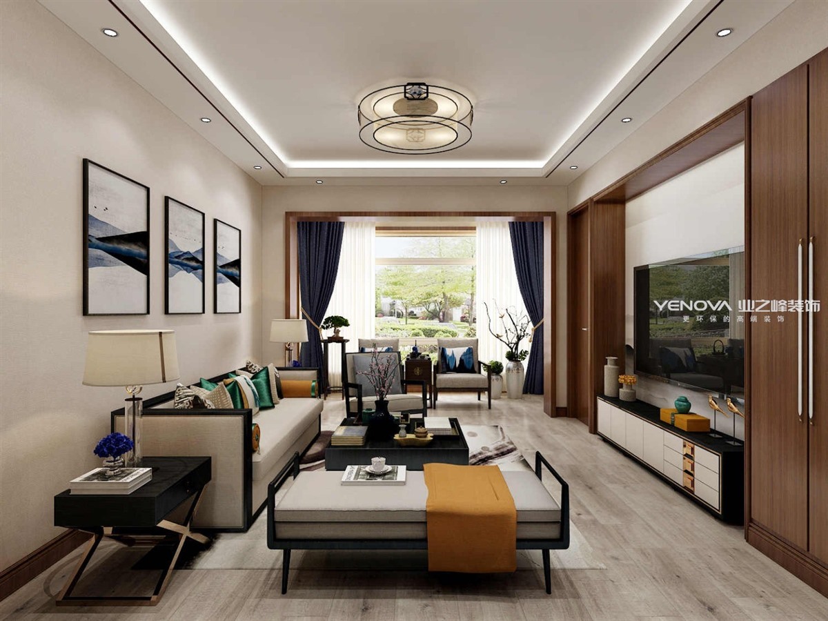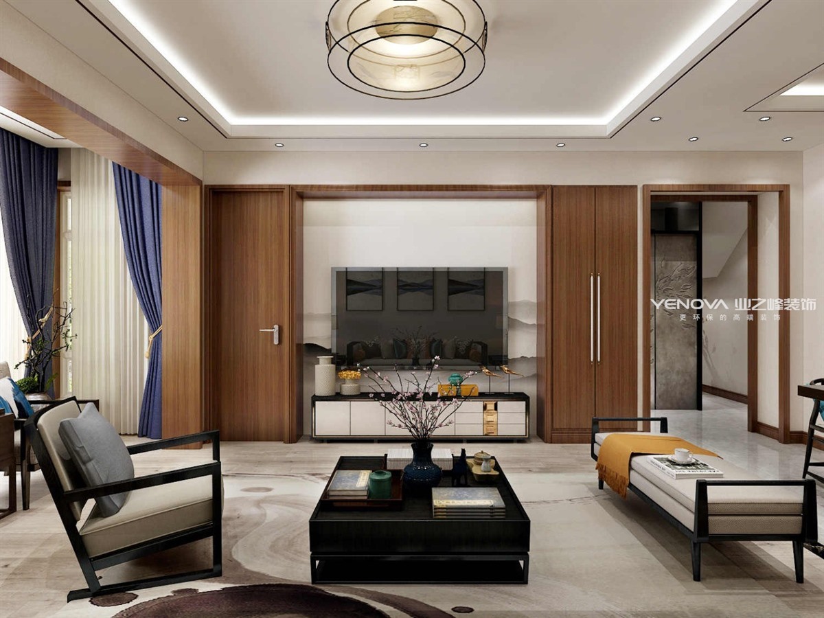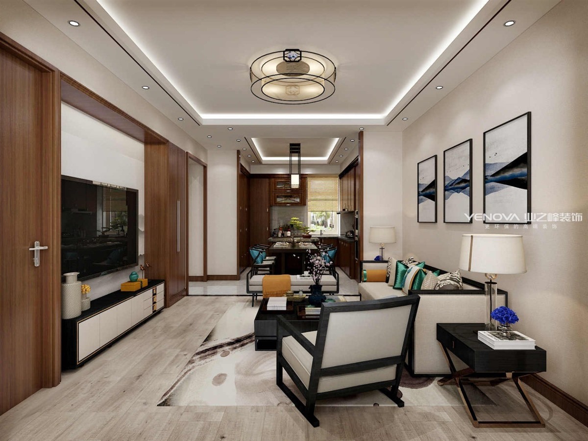 一家三口居住 丈夫厨师 妻子教师 爱好读书、品茶等。本案的设计风格为新中式。中式元素与现代材质的巧妙兼柔的布局风格,同时改变原有空间布局中等级、尊卑等封建思想,给传统家居文化注入了新的气息。中国传统居室非常讲究空间的层次感,这种传统的审美观念在“新中式”装饰风格中,又得到了全新的阐释。墙面用白色乳胶漆或浅色壁纸,地面用石材、地砖、地毯。家具、小饰品,讲究雕刻彩绘、造型典雅。多采用酸枝木或大叶檀等高档硬木,经过工艺大师的精雕细刻,每件作品都有一段精彩的故事。而每件作品都能令人对过去产生怀念,对未来产生一种美好的向往。全屋家具色彩以深色沉稳为主,再配以黄色的靠垫、坐垫就可烘托居室淡雅素净的氛围。依据住宅使用人数和私密程度的不同,需要做出分隔的功能性空间,则采用“垭口”或简约化的“博古架” 来区分;在需要隔绝视线的地方,则使用中式的屏风或窗棂,通过这种新的分隔方式,单元式住宅就展现出中式家居的层次之美。