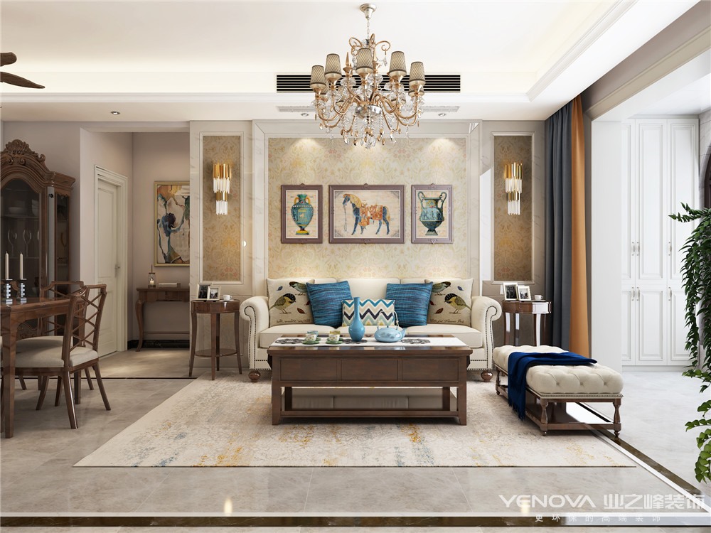 本套方案为美式风格,通过空间布局上的合理运用,既能在生活上满足客户的需求,又传达出美式设计,温馨舒适的生活体验。用利落的线条完美的材质和现代的家具赋予了空间生命力。亮色的点缀和搭配能产生别样的美,为家居带来舒适和安逸。