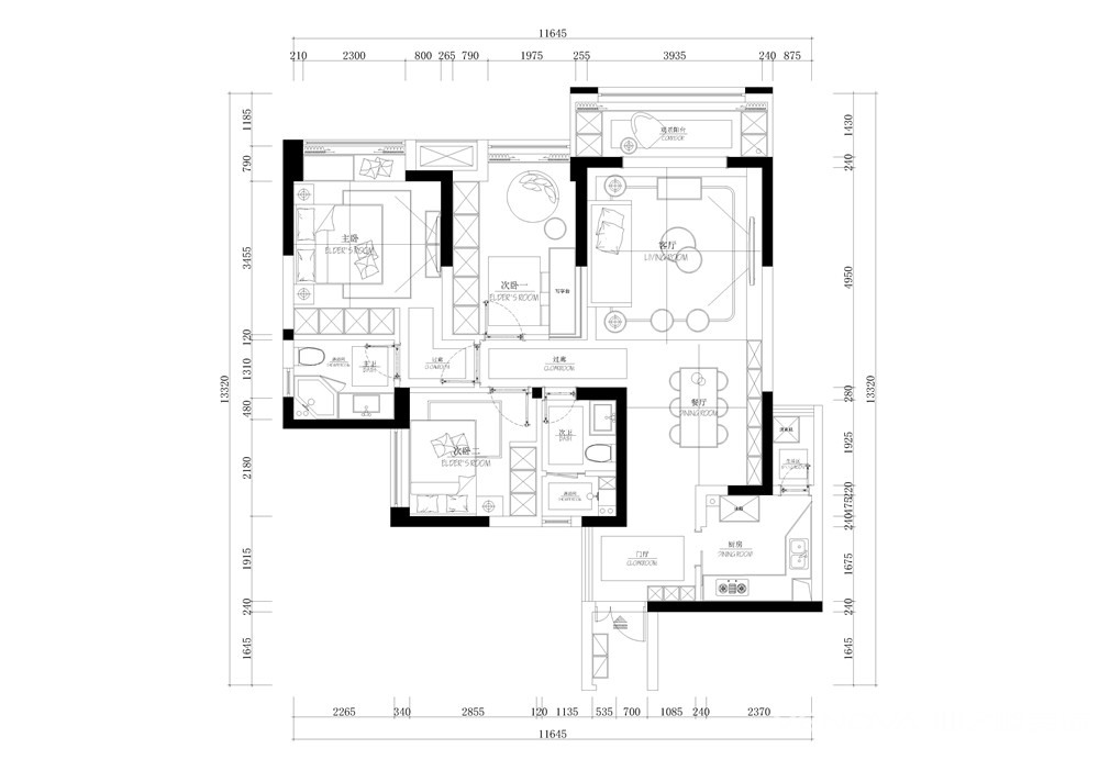 小区:洲际银海湾 面积:90㎡ 户型:三居 风格:现代简约风格