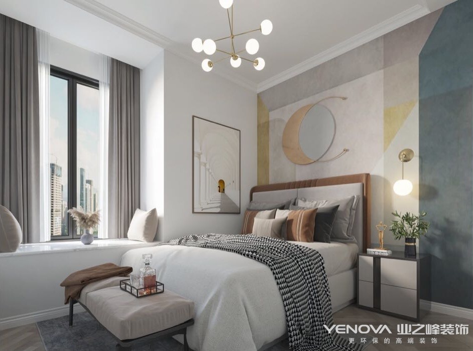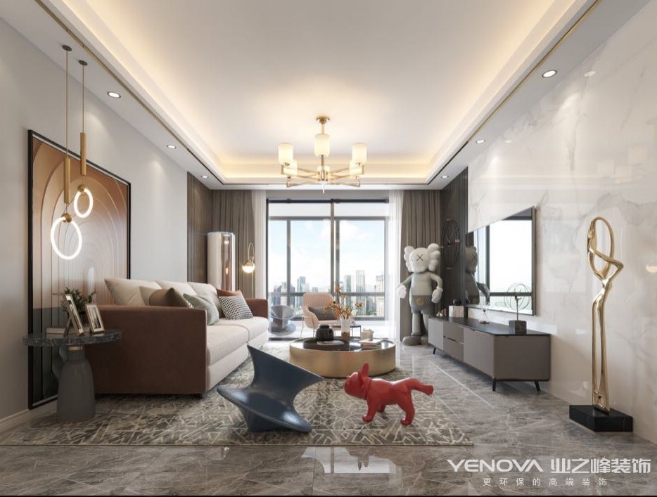 此户型为三口之家,男主人是一位性格幽默,内心拥有很多段子的人才,他喜欢现代简约的感觉,喜欢简洁时尚的慢生活。此方案中,我们将客餐厅作为一个整体凸显大气,整体配色上用的是带有时尚气息的浅灰色,沙发背景用的是浅一点的灰色硬包饰面加上不规则不锈钢条,增加更多的设计感。电视背景为了凸显大气,用的是白色带纹路的大理石,整个区域加上软装的搭配,达到具有品质且设计创意满分的效果。