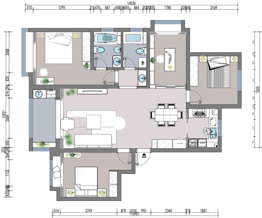 小区:绿地城 面积:140㎡ 户型:四居 风格:现代简约风格