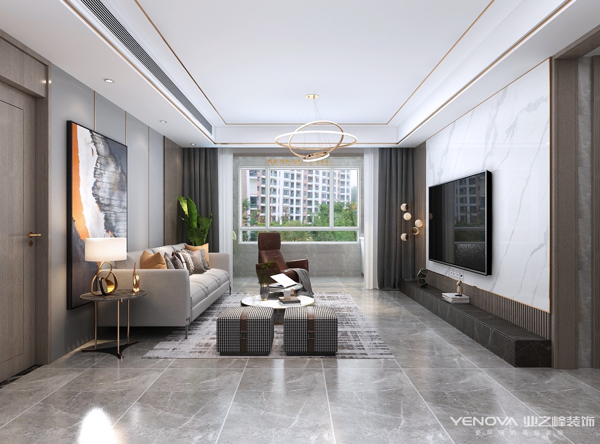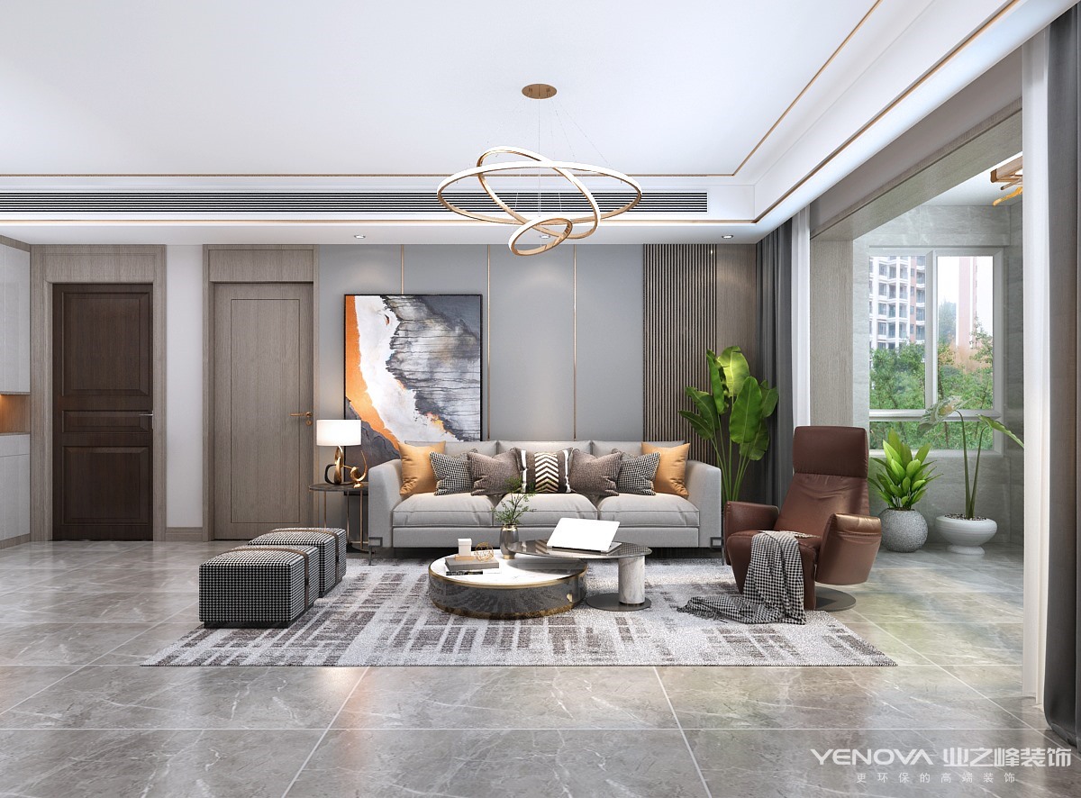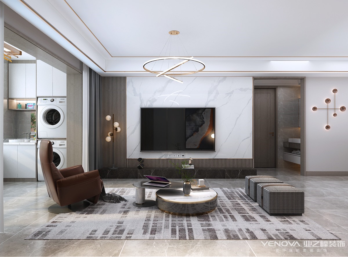 本案为现代风格,客厅通过色调的基础搭配,凸显整个空间高端大气的格调。以空间最大化的前提,满足收纳的同时空间美观性同时兼具,衬以金属、水晶、玻璃等材质的点缀,让整体空间高贵典雅。