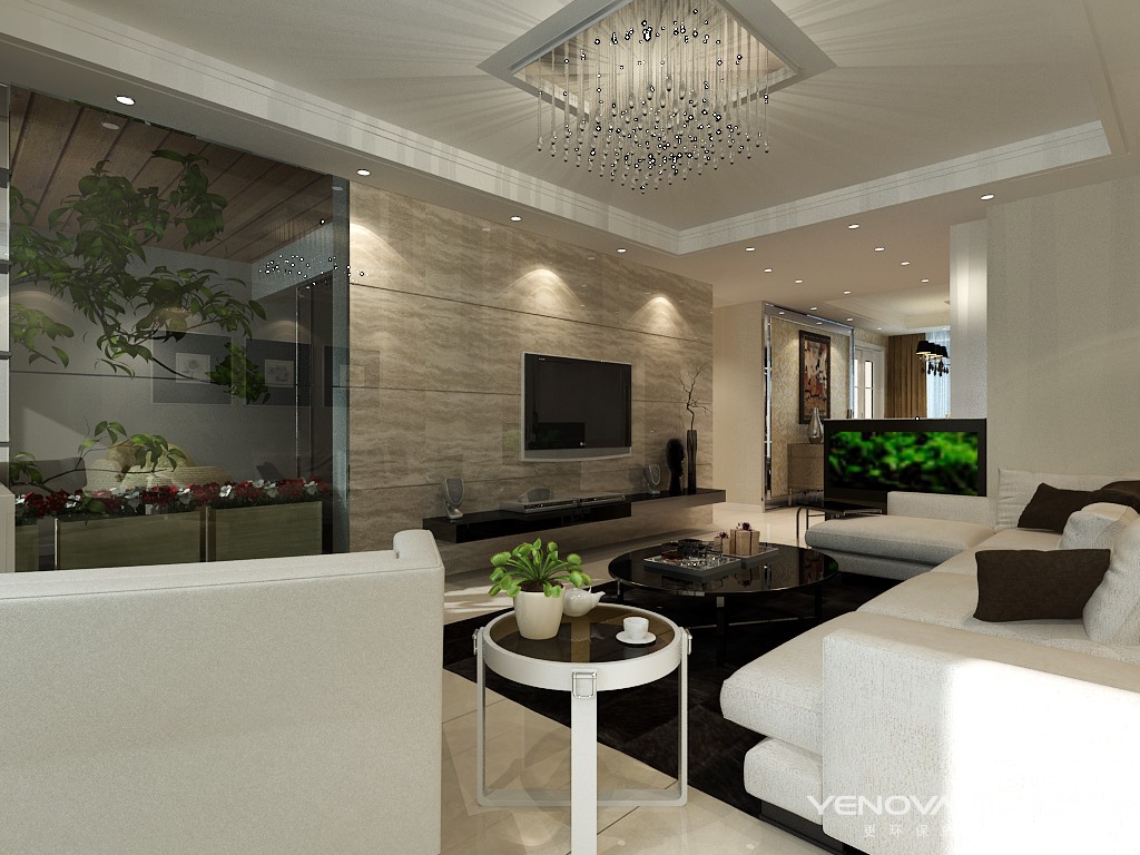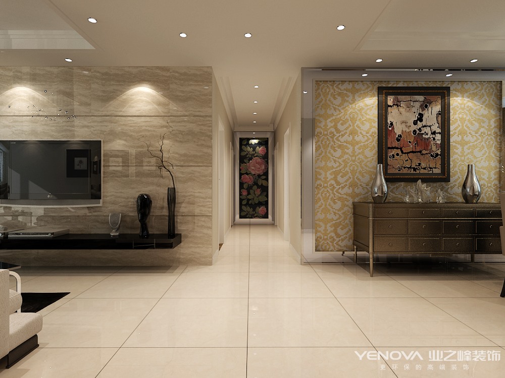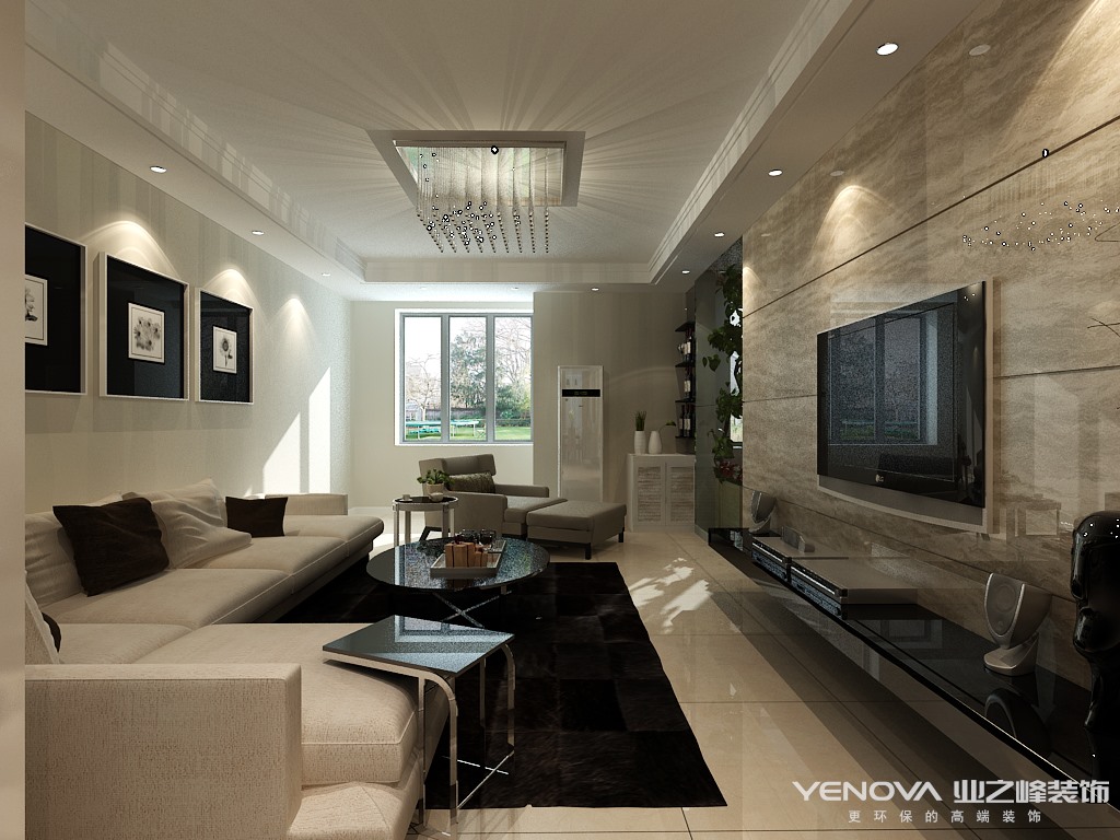 本案例为现代风格,整屋以暖色调为主,业主不想要一回到家就像再次进入办公室那样,给客户呈现一种温馨的感觉,但也有现代元素在里面,电视背景墙采用整体石材,以及现代风格的主要元素无主灯设计,让客户及感受到家的温馨也不失现代气息。