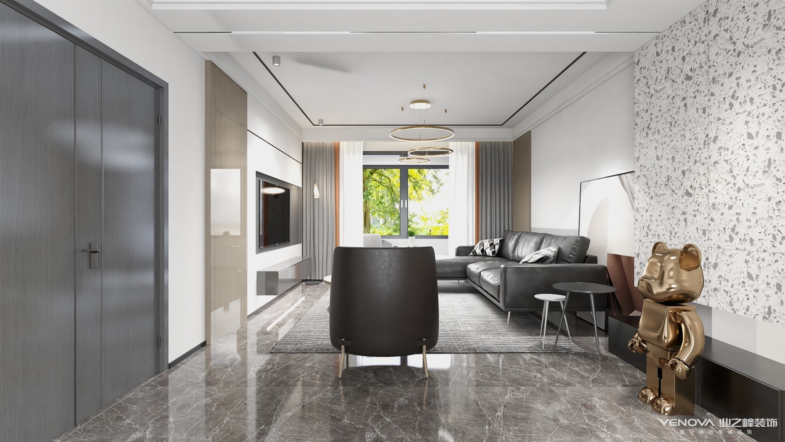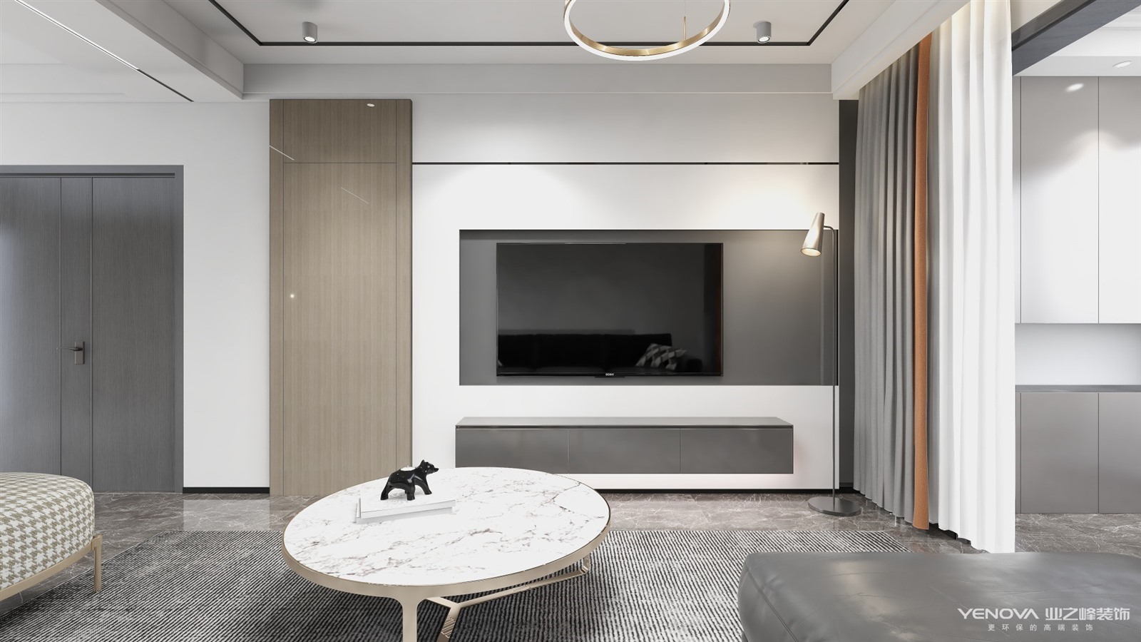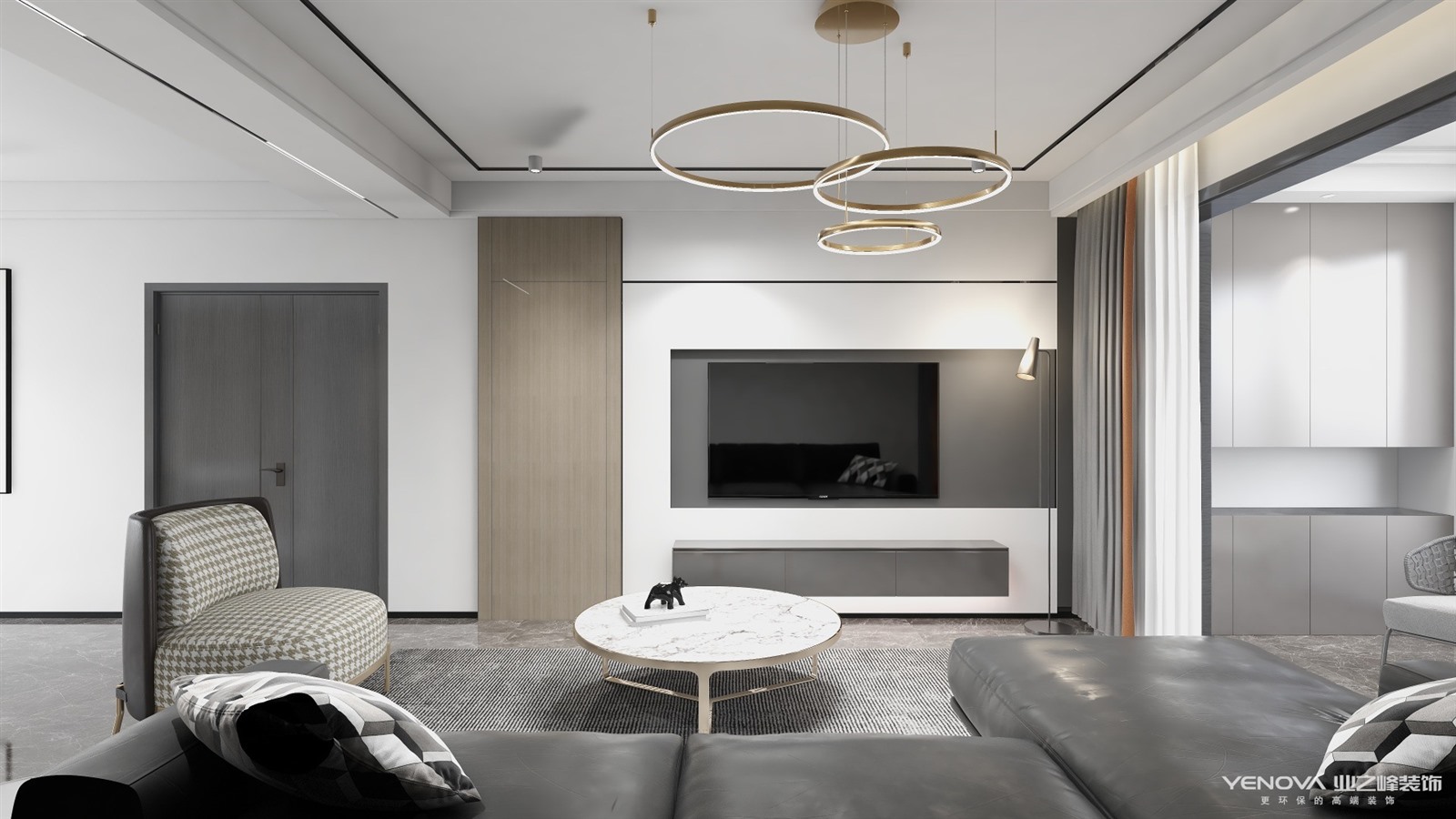 ”光语故事“是在现代风中加入目前最为流行的磁吸轨道灯和线型灯,以光为主题的设计风格。在我们的生活中往往忽视对光的研究和了解,好的设计光源会让整个家庭更加温馨,所以这次的重点也是光的设计。布局上放弃传统的主卫,打开设计大的衣帽间来弥补女士衣服较多的问题,影视墙更是简化设计,利用隐形门增加视觉效果。