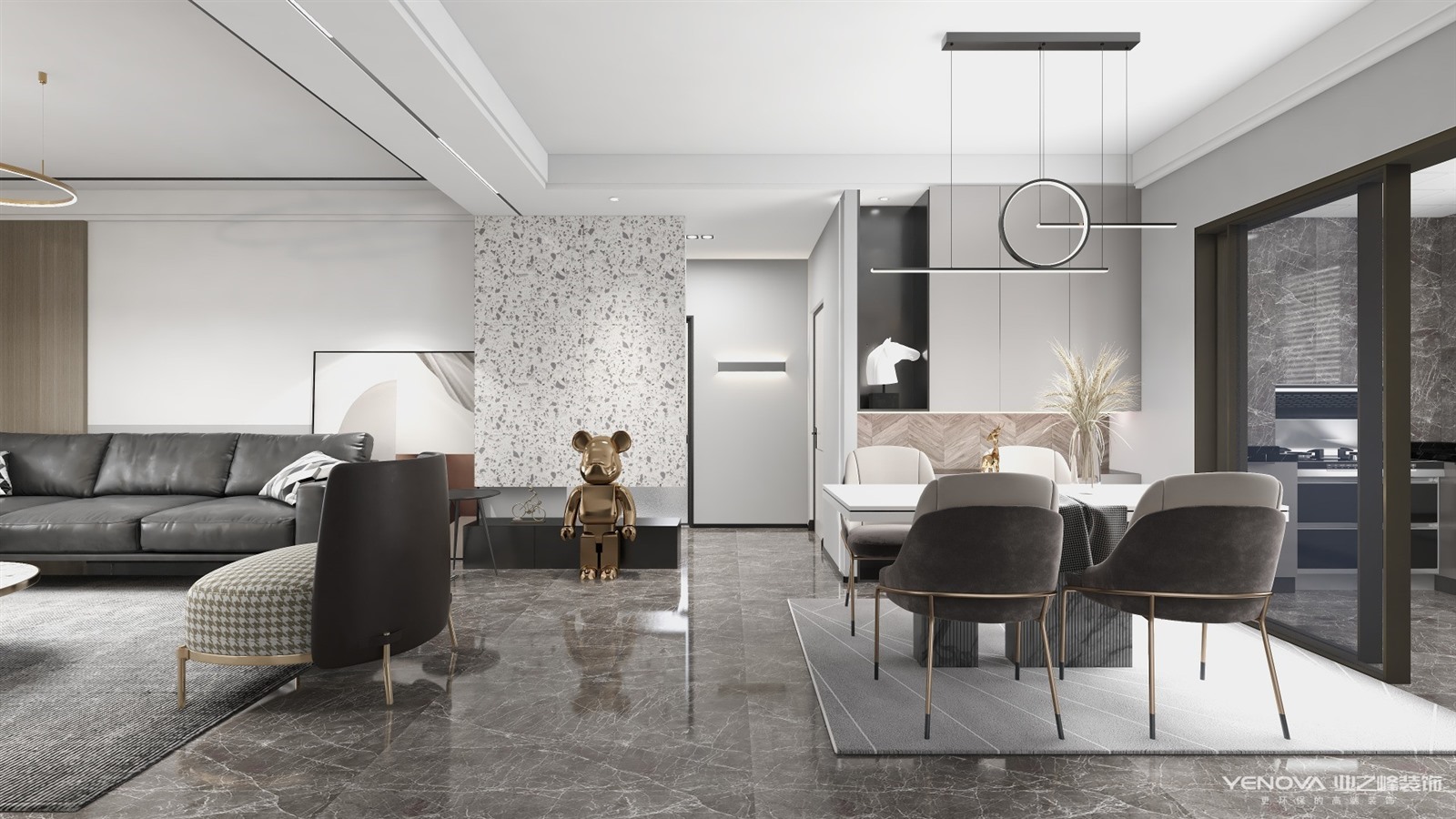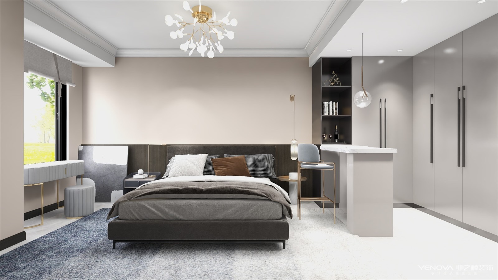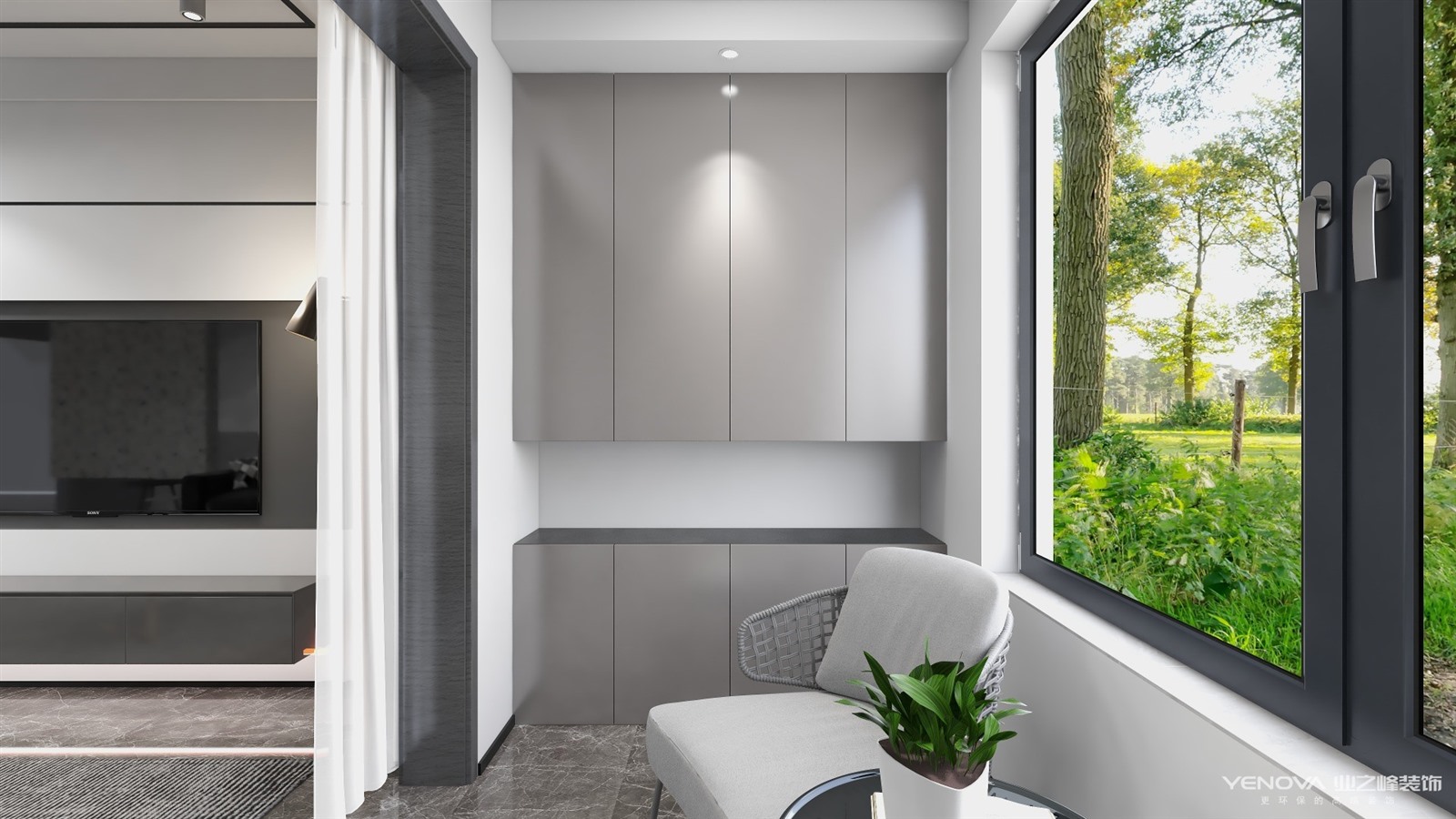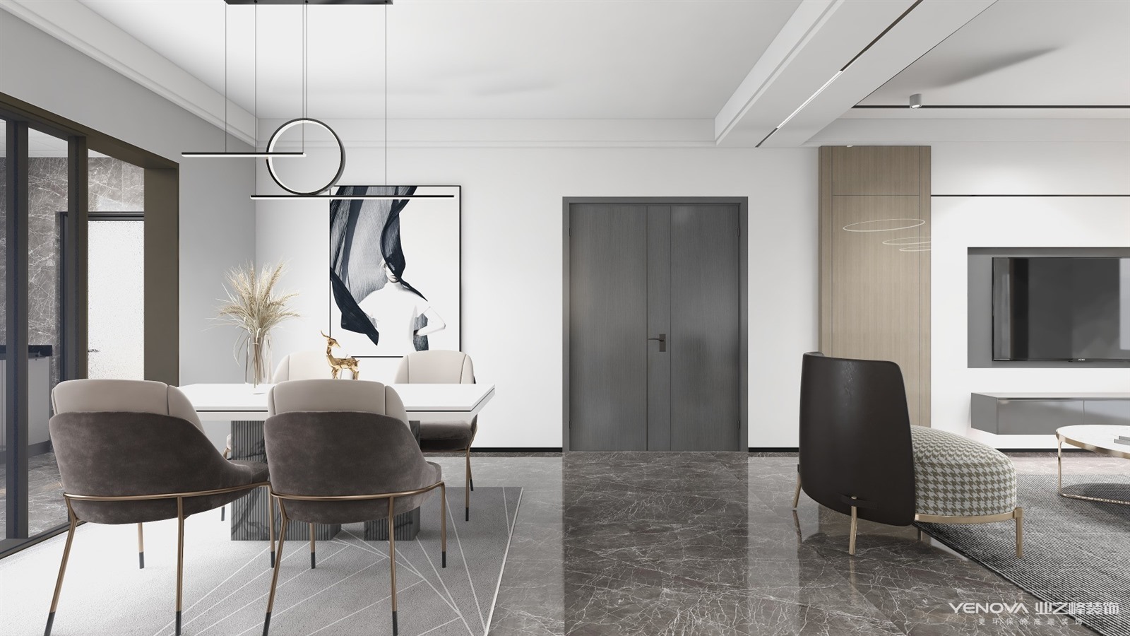 ”光语故事“是在现代风中加入目前最为流行的磁吸轨道灯和线型灯,以光为主题的设计风格。在我们的生活中往往忽视对光的研究和了解,好的设计光源会让整个家庭更加温馨,所以这次的重点也是光的设计。布局上放弃传统的主卫,打开设计大的衣帽间来弥补女士衣服较多的问题,影视墙更是简化设计,利用隐形门增加视觉效果。