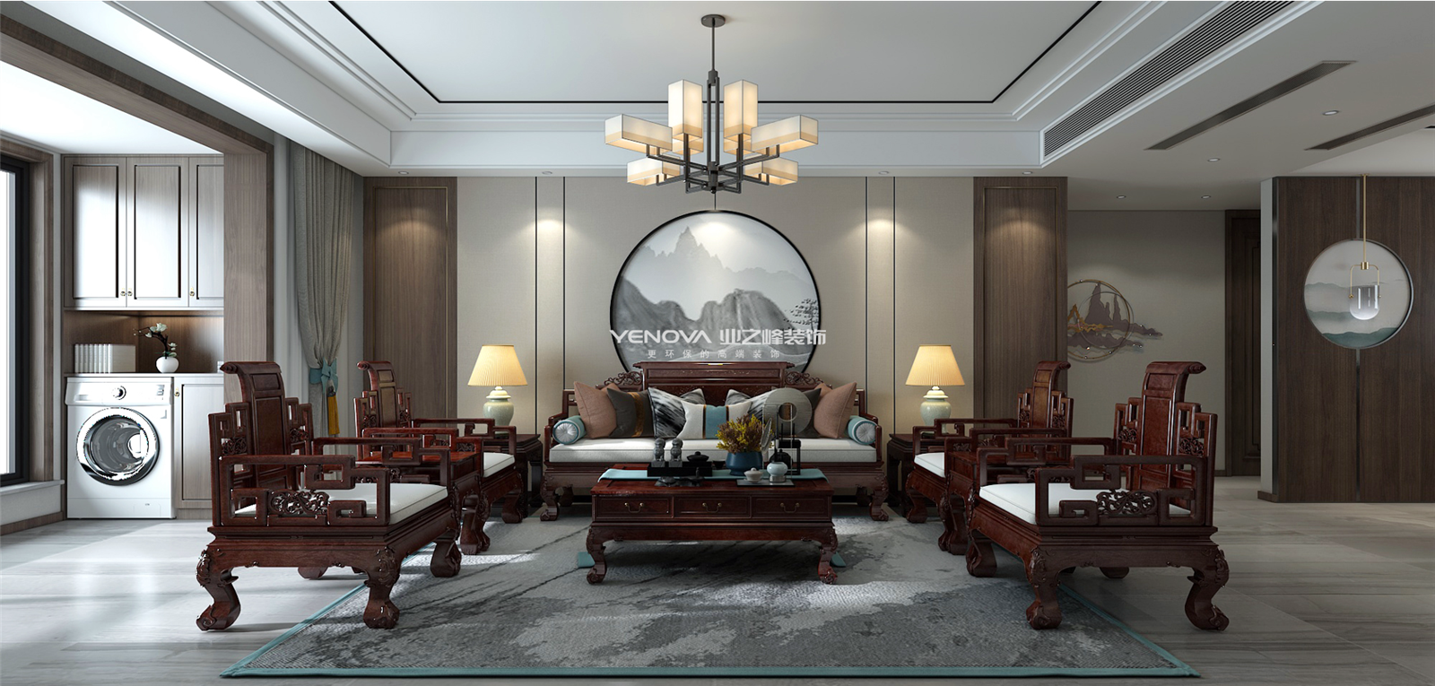 小区:德贤公馆 面积:161㎡ 户型:三居 风格:新中式风格